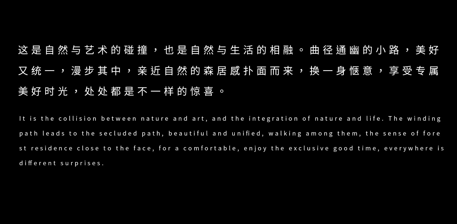It is the collision between nature and art, and the integration of nature and life. The winding path leads to the secluded path, beautiful and unified, walking among them, the sense of forest residence close to the face, for a comfortable, enjoy the exclusive good time, everywhere is different surprises.