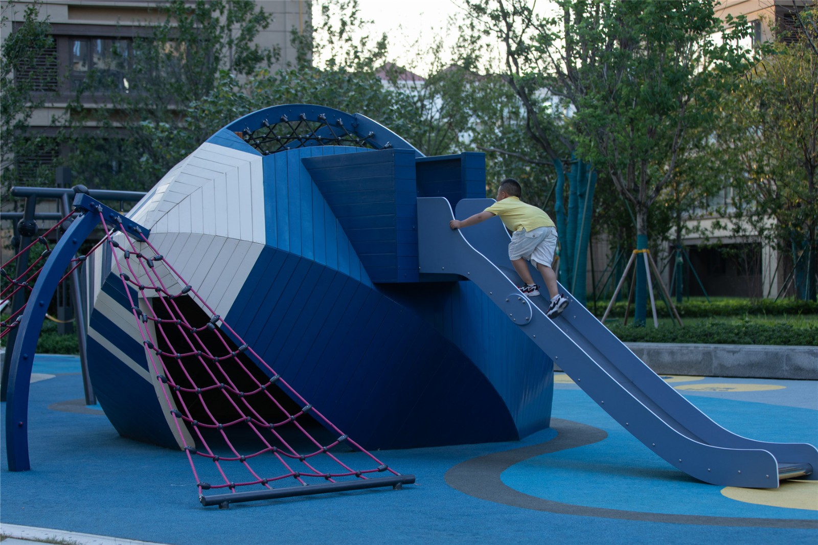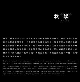 Design to navigation exploration as the entry point, meaning the new force, to sail-adventure-return as the site storyline to create a theme children's activity space, the overall space to the ocean, the shape of the form of the ocean and islands, color continuation sea blue and appropriate ornament color, equipment choose power game equipment, enhance the body function of children, supplemented by roller skating field, live interpretation "waves, island" landscape scene, strive to create a "mystery, adventure" children's amusement world.