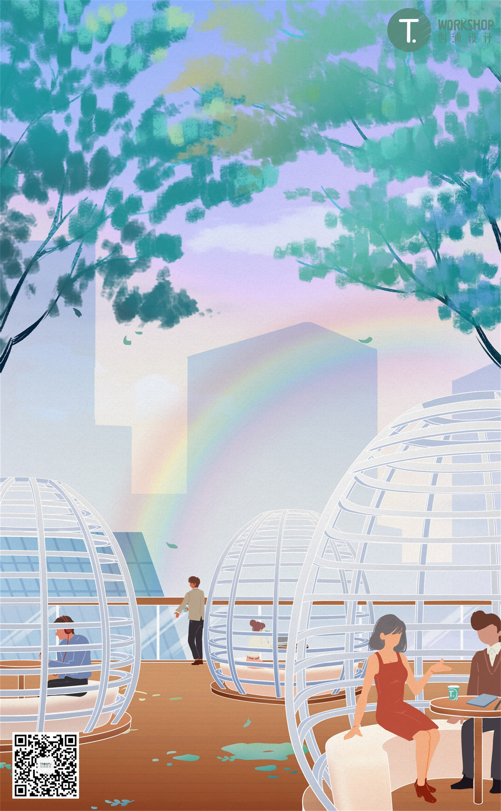 The weightless space station is to create a relaxed and comfortable multi-functional commercial inner street for office, meeting, leisure and shopping. Does the chaos and complexity of the city make you feel a little tired? Come to the weightless space station to unzip it!