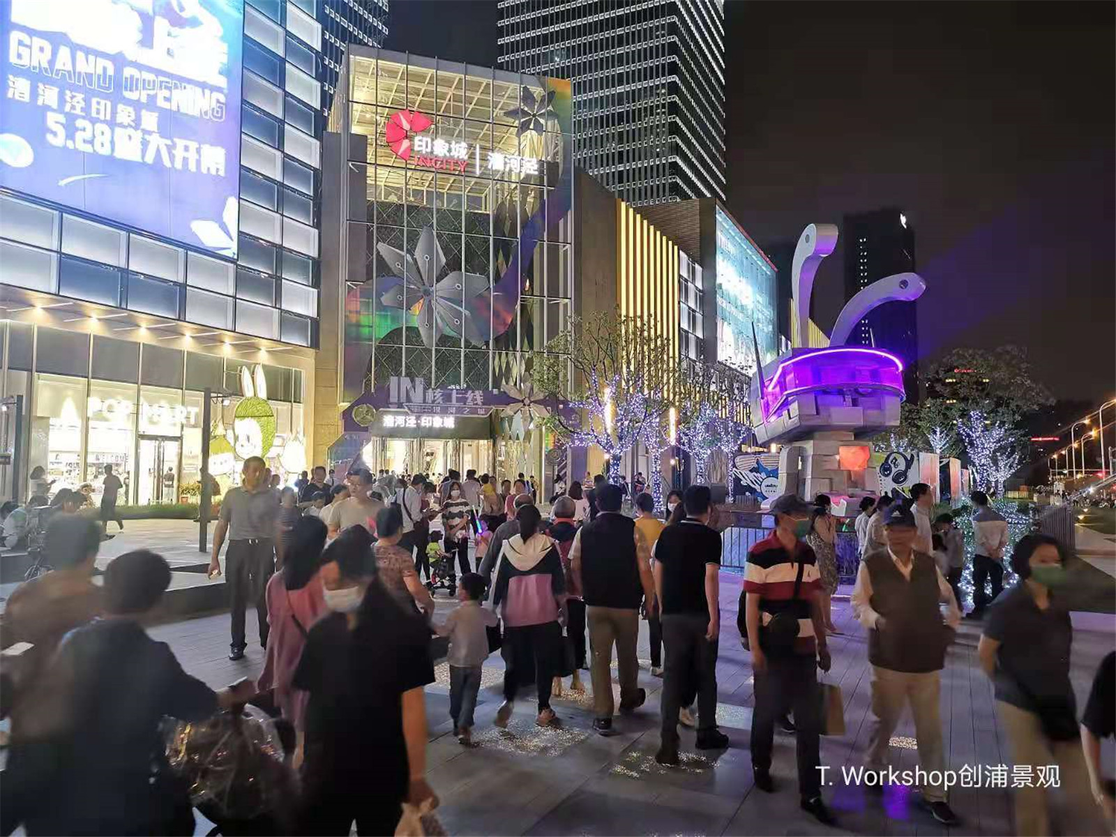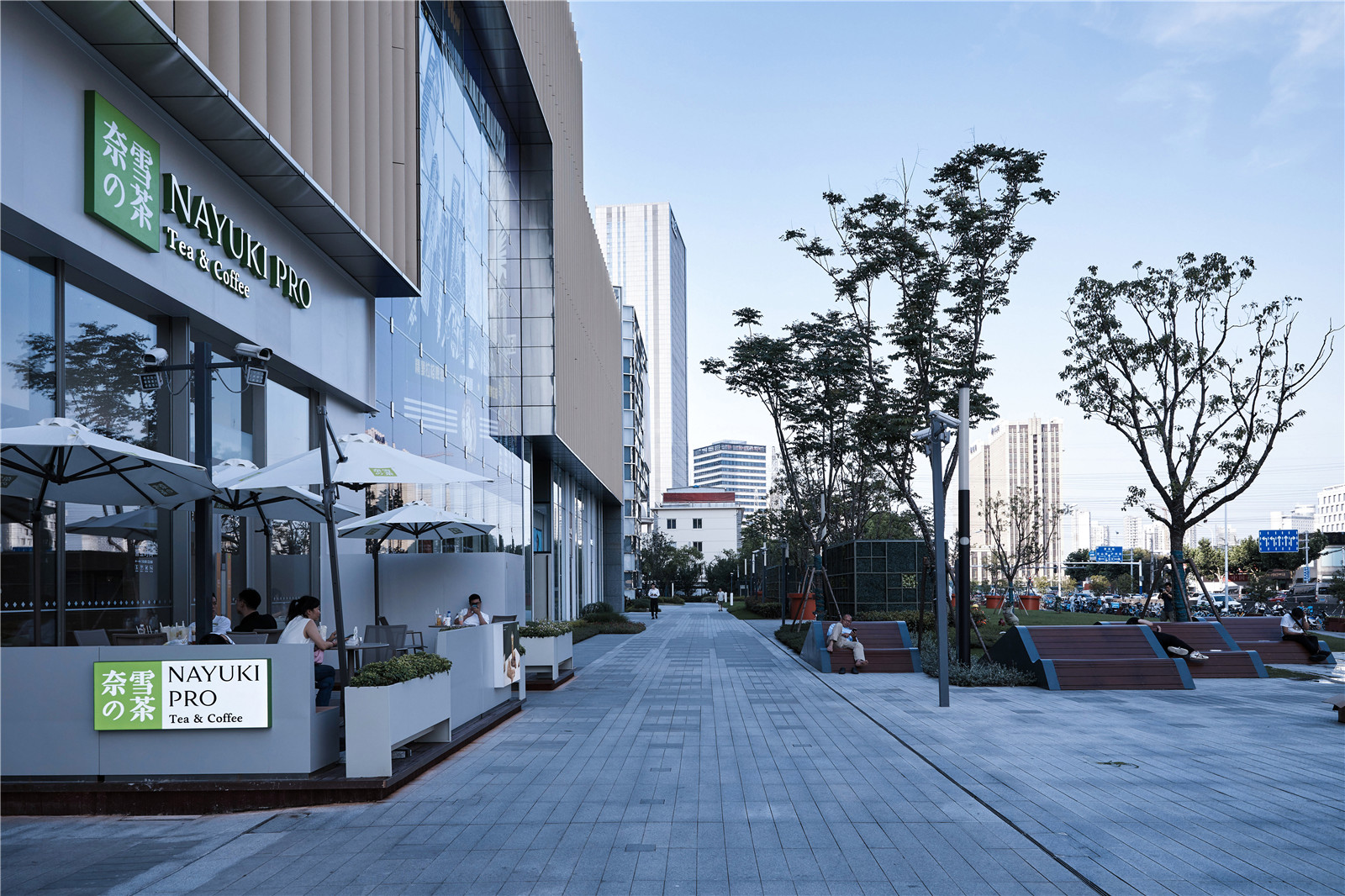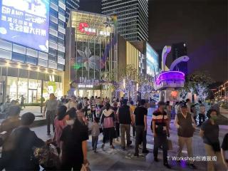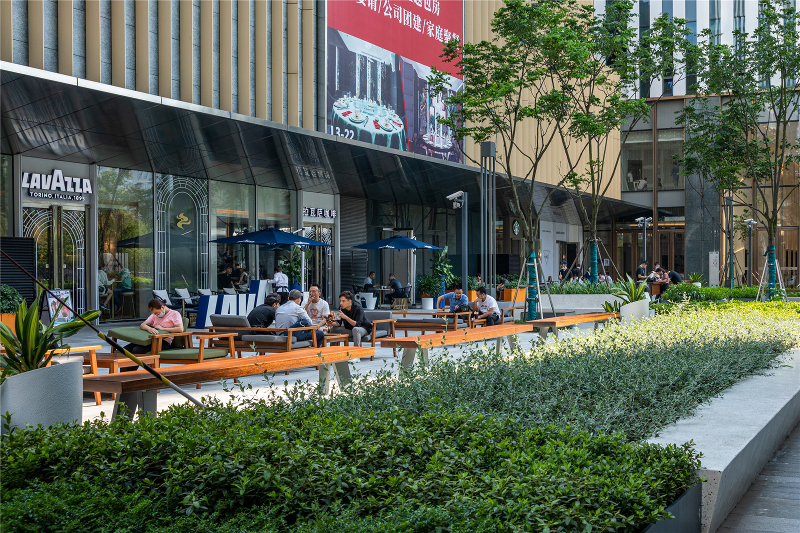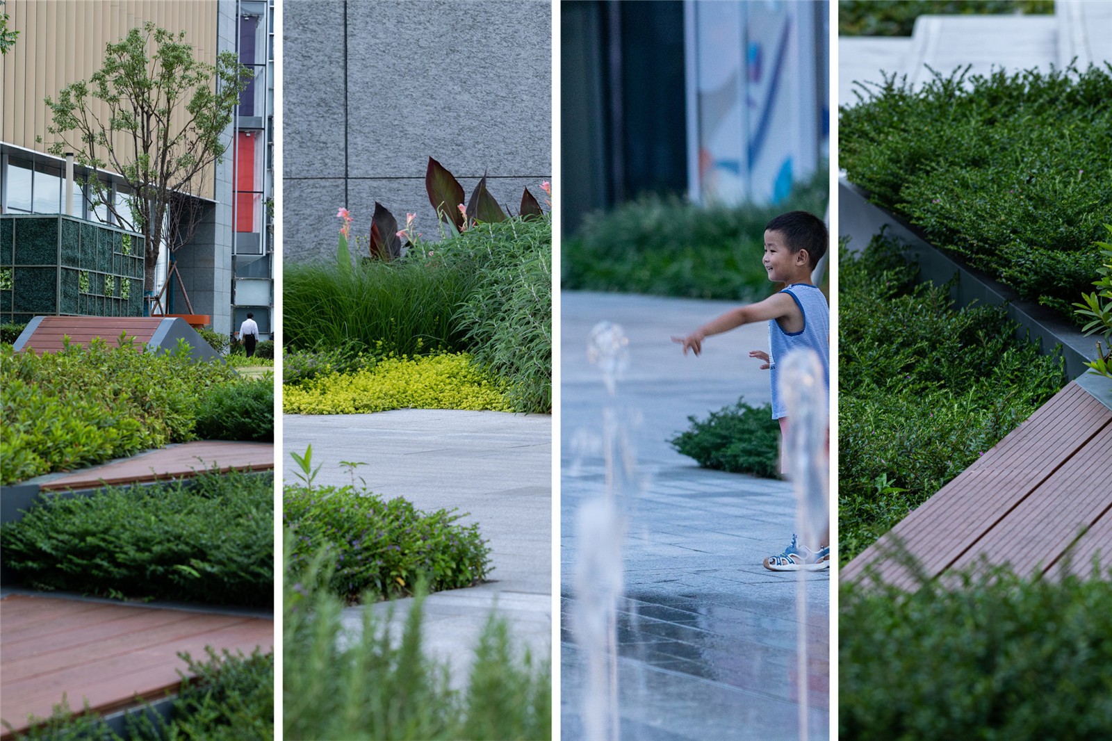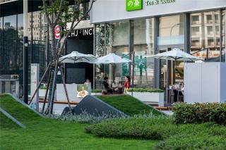 After construction, the hard-paved area of the entrance plaza was expanded, and IP interactive memory points were added; through the design of the ventilation shaft facade, planting, paving, etc.,the layers of landscape were increased; the interactive waterscape, small pocket park, outdoor meeting room, small stage, etc. were added. These facilities enclose more functional activity spaces, increase street vitality, and create commercial landscape venues that conform to the types of the business.