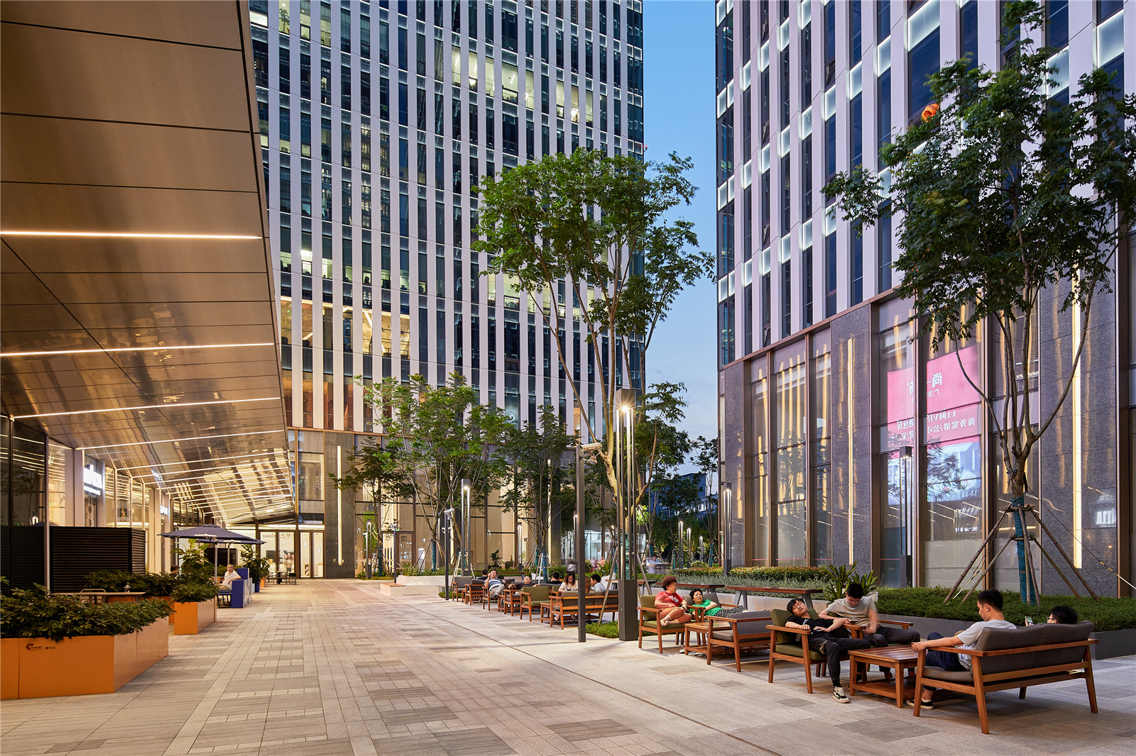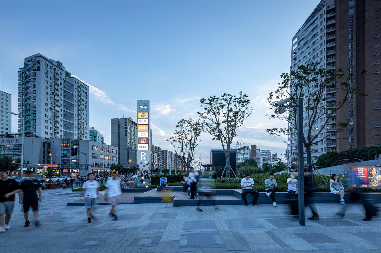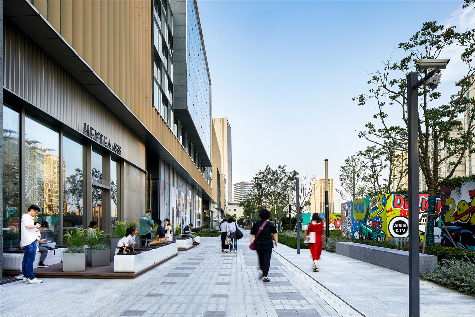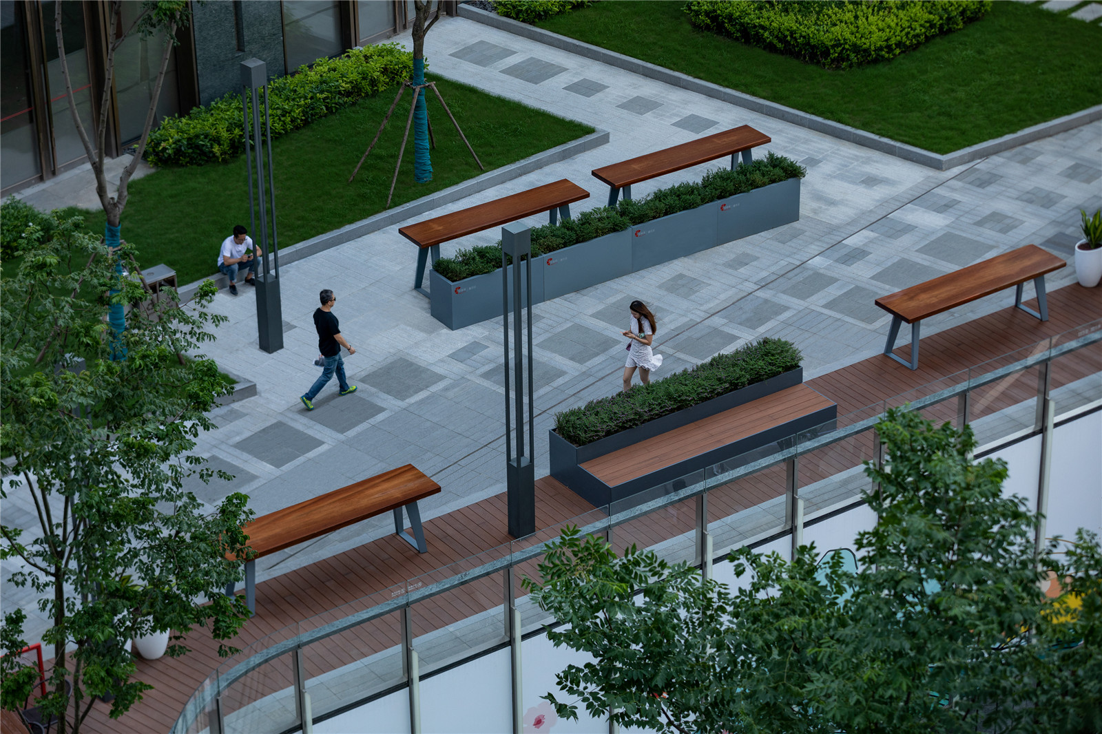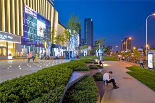 After construction, the hard-paved area of the entrance plaza was expanded, and IP interactive memory points were added; through the design of the ventilation shaft facade, planting, paving, etc.,the layers of landscape were increased; the interactive waterscape, small pocket park, outdoor meeting room, small stage, etc. were added. These facilities enclose more functional activity spaces, increase street vitality, and create commercial landscape venues that conform to the types of the business.
