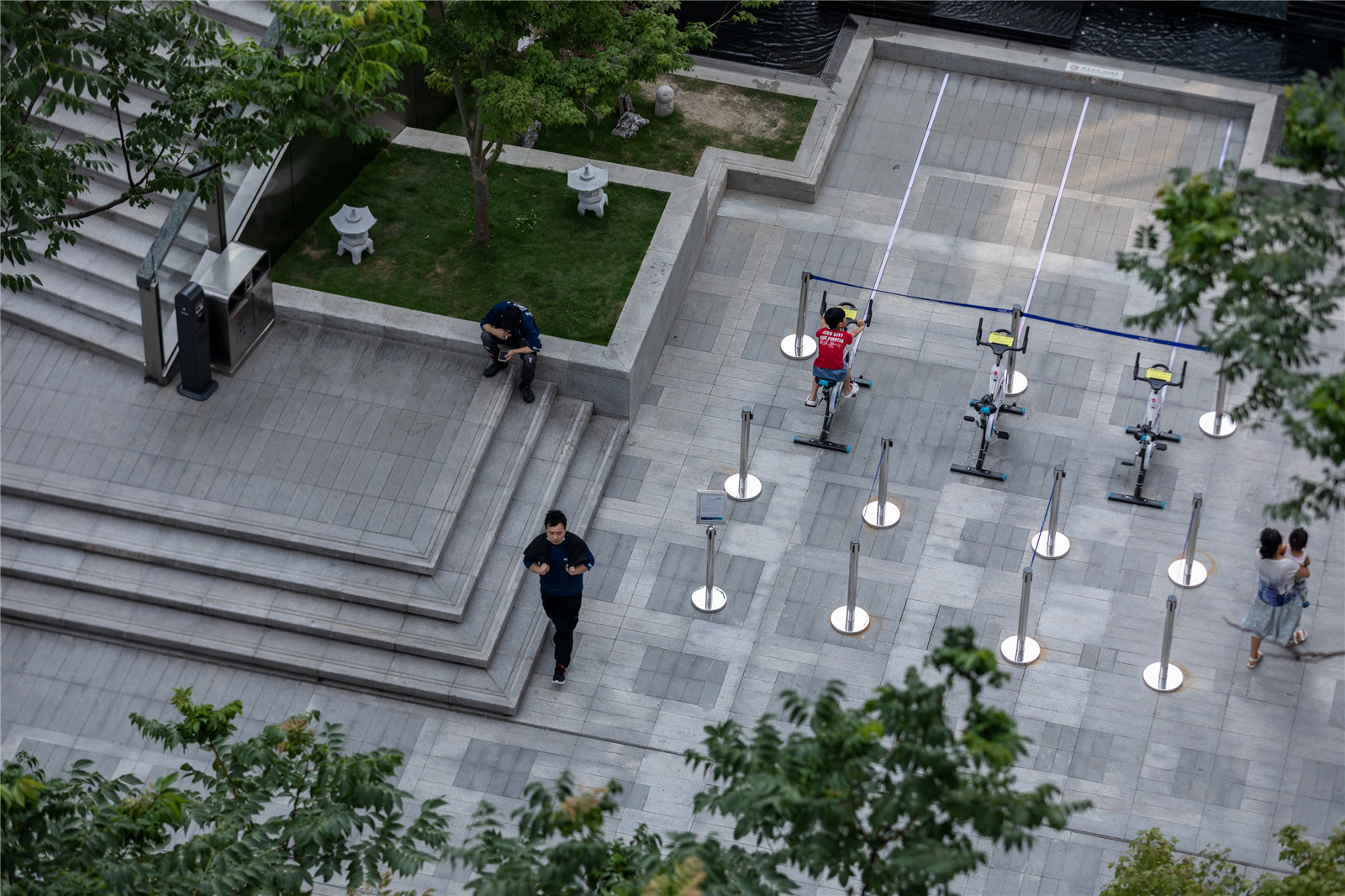 For example, whether it is a strange beach tour under the blue sea and blue sky, a multi-person PK on a spinning bike, or a kimono parade in Jingshi Ichiban Street. The excitement of the sunken square attracted people from the ground level to stop and watch.