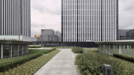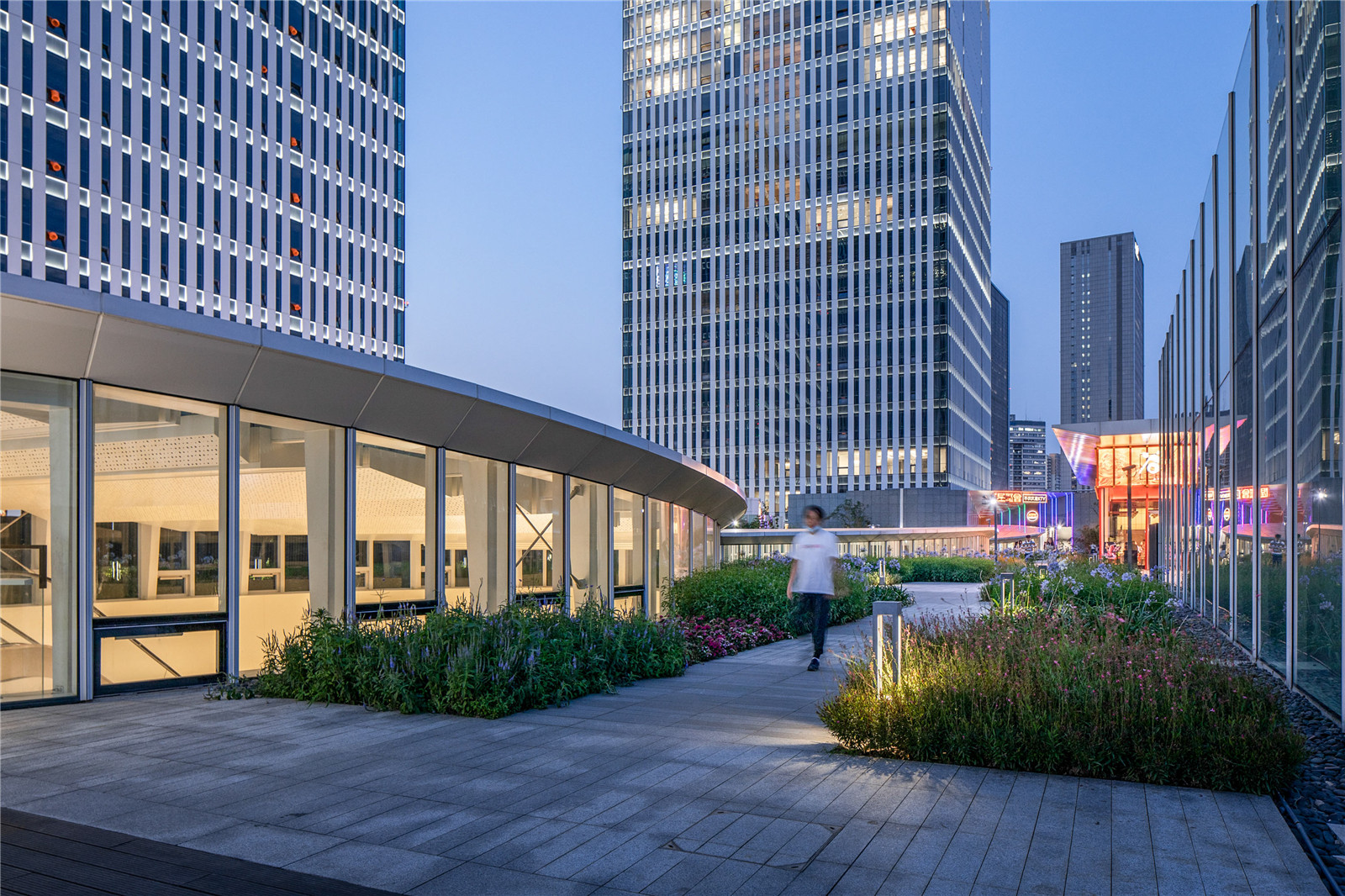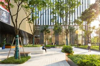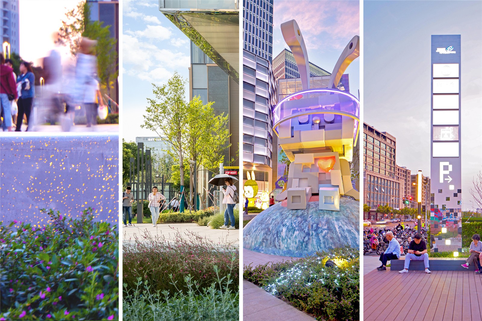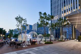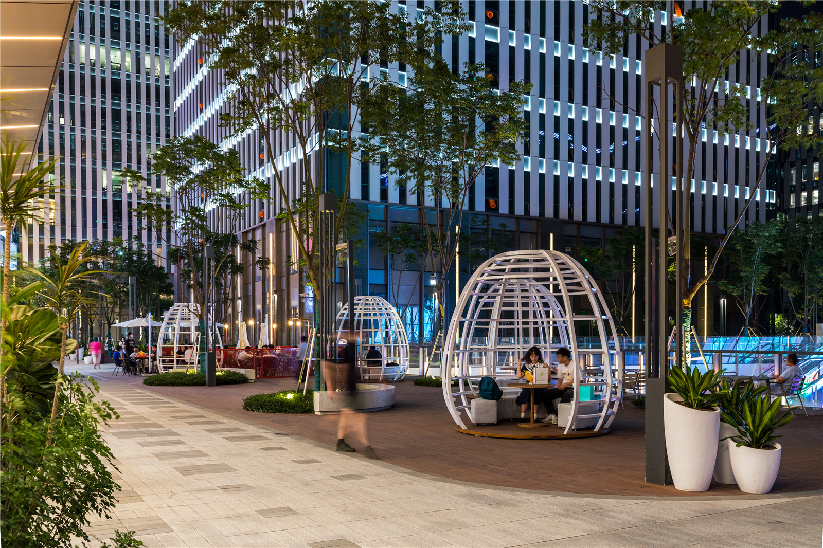 現(xiàn)代感的建筑、景觀巧思與忙碌的人群。