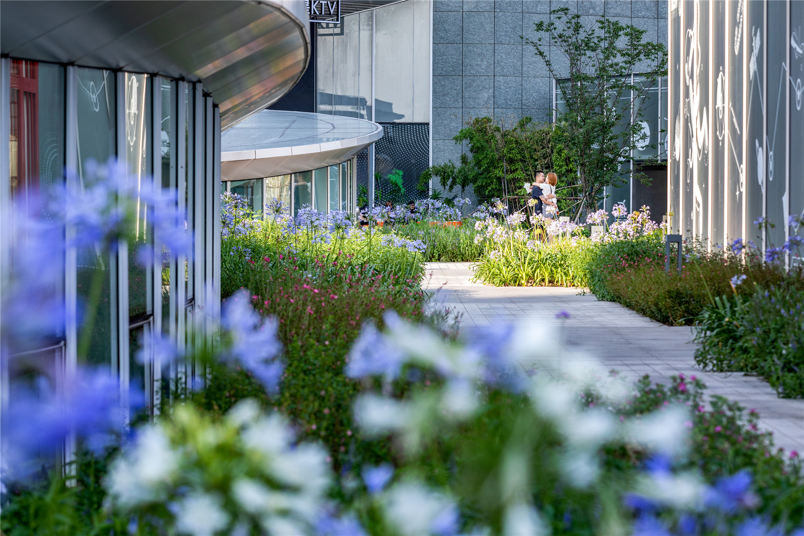 In the west corner plaza, the tall spiritual fortress on the front left and the heavyweight IP "IN Rabbit" combined with the landscape atmosphere to create an unforgettable memory point; the dense paving of "starlight" and the surrounding grass and flowers complement each other and are full of fun; The light-permeable concrete pattern on the ground guides people into the commercial interior.