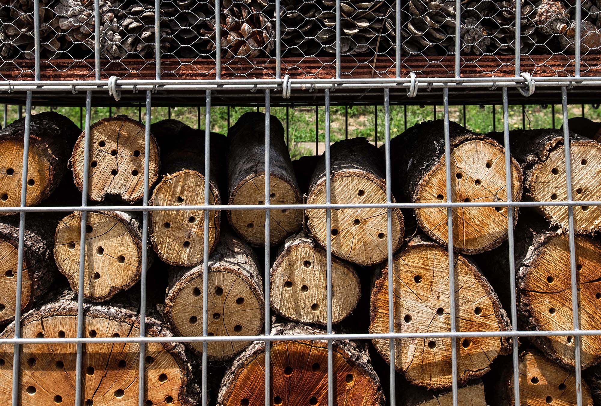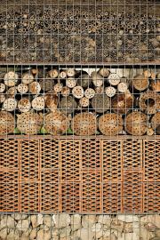 “昆蟲旅館”是為昆蟲及蛛形綱動物[1]所做的人造居所和冬眠場所,采用天然材料建造。它由若干節(jié)段組成為一個分離的結(jié)構(gòu),每個節(jié)段都配有筑巢設(shè)施。該設(shè)計使諸如獨居蜜蜂[2]之類的脆弱的物種可以在一個安全的空間里定居、發(fā)展和繁殖?!袄ハx旅館”以一種既實用又經(jīng)濟的方式,幫助和保護(hù)因耕作和森林砍伐等人類活動而瀕臨滅絕的昆蟲。其中許多物種因其授粉活動和作為寄生蟲捕食者而在生態(tài)系統(tǒng)中發(fā)揮著關(guān)鍵作用。