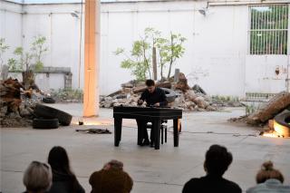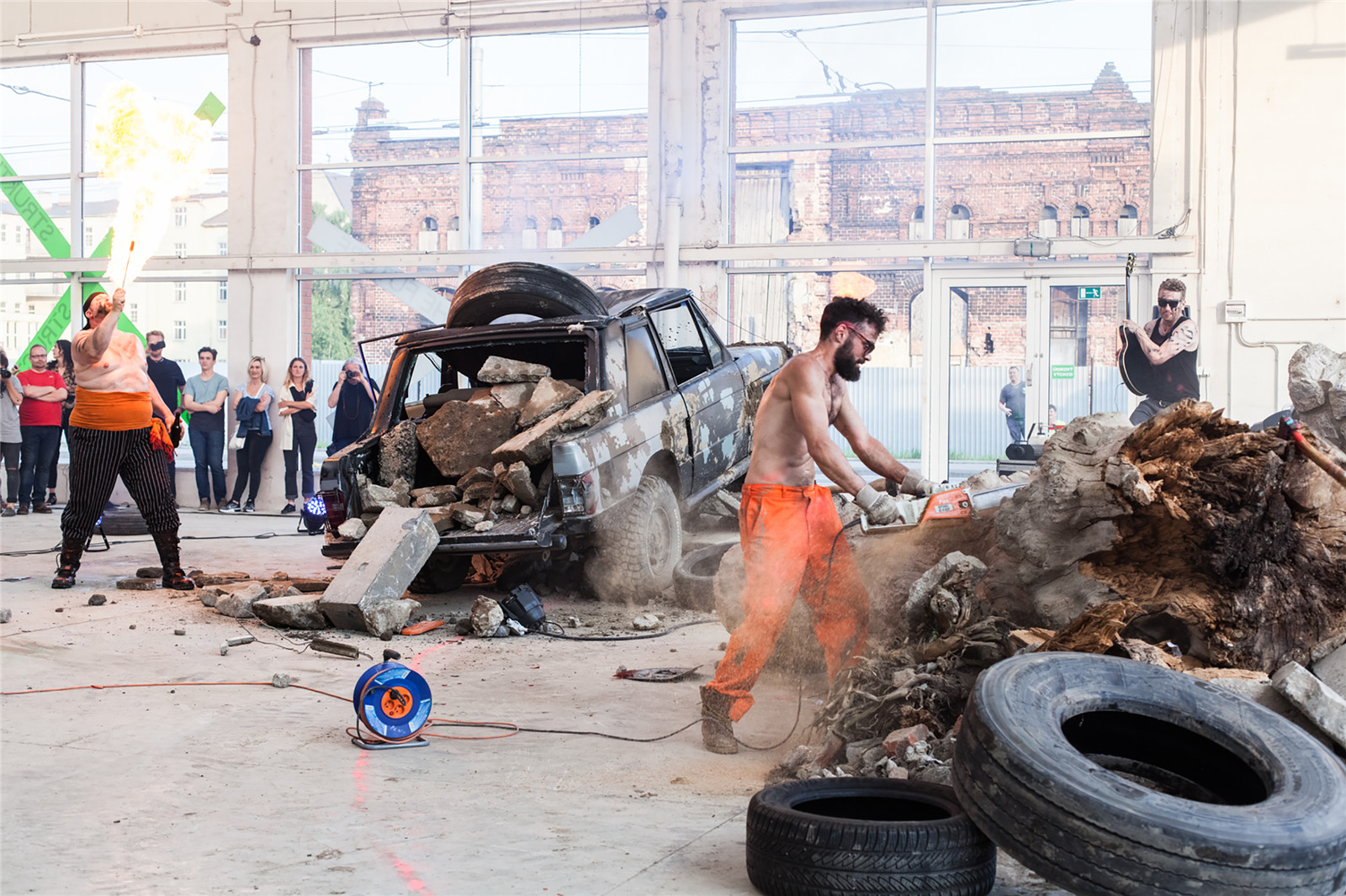 ▼ 藝術(shù)家Matyá? Chochola及其團(tuán)隊(duì)的表演,如同文明廢墟上的舞蹈儀式
