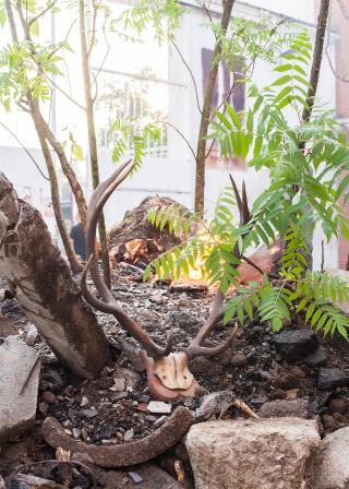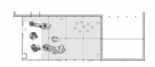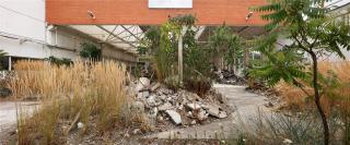 我們知道這是一個(gè)與眾不同的項(xiàng)目,諸多的限制反而讓它越來越有趣。最初我們試圖開鑿大廳的混凝土地面來塑造起伏地形,但這個(gè)想法過于激進(jìn),后來決定布置一個(gè)碎石堆砌的場景。我們繪制了平面圖來預(yù)估建筑廢料的用量和所需植物的數(shù)量。其余的設(shè)計(jì)都必須現(xiàn)場完成。