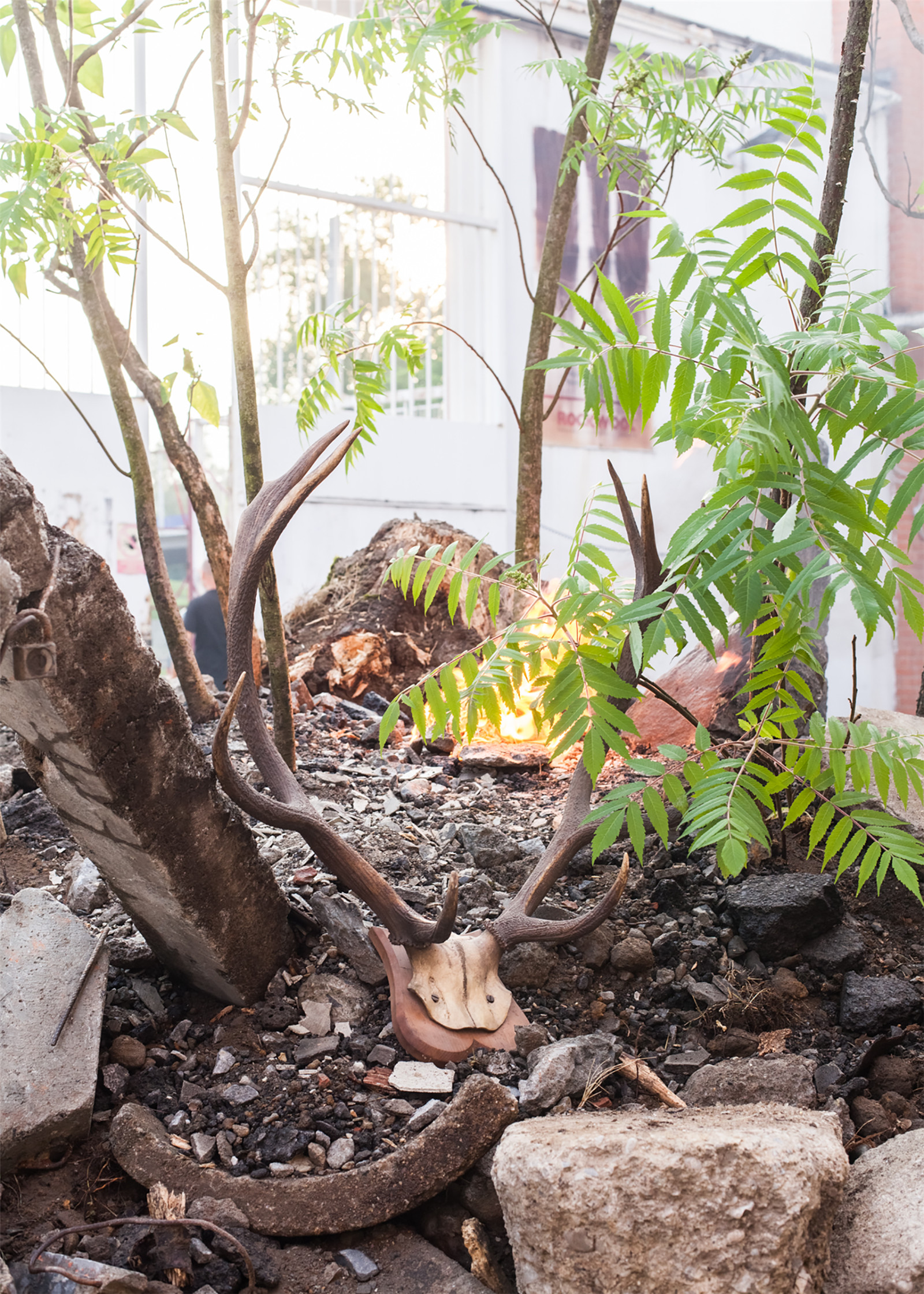 Little did we know this was going to be one of the most thrilling team-building experience for us. The improvisation and creative collaboration of both our studio, artists and construction workers carved an unforgettable impression and story for the birth of this space. The conclusion of the work and hence opening of the garden was declared with an artistic performance by Matyá? Chochola and his team, depicting wild expressions of dark joy, a sort of dancing ritual on the ruins of an extinct civilization.