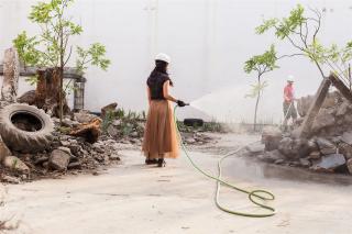 Time was a ticking challenge, everything was moving fast. Rubble had to be urgently moved from nearby construction site. That meant we would have only one day to use the available machines to organize and design the space and another day to plant the vegetation and art pieces. We needed every woman and man.
