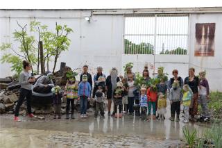 時(shí)光如白駒過隙,工期有限,我們必須盡快從附近的建筑工地搬來碎石。這意味著我們僅有一天時(shí)間用現(xiàn)有的設(shè)備來整理和設(shè)計(jì)空間,再多出一天來完成種植和藝術(shù)裝置。每個(gè)人都要竭盡全力。