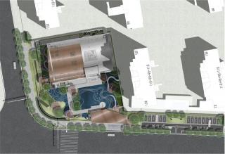 項(xiàng)目場(chǎng)地入口空間區(qū)域較為方正,但豎向上高差接近1.5米,景觀面積僅3500平米,如何在有限的場(chǎng)地里合理利用高差,打造出極具地域特色的城市空間界面,是我們首要解決的問(wèn)題。