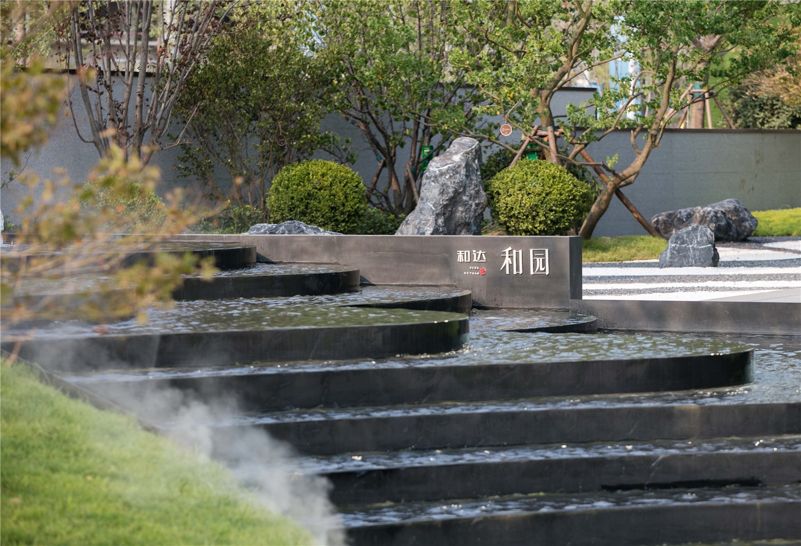綠蔭、涌泉、置石在方寸之間,營(yíng)造出一片愜意之地。浮光掠影間,用秩序的規(guī)劃彰顯山居情感,展現(xiàn)設(shè)計(jì)師對(duì)于“和”的理解,對(duì)“道法自然”的展現(xiàn)。