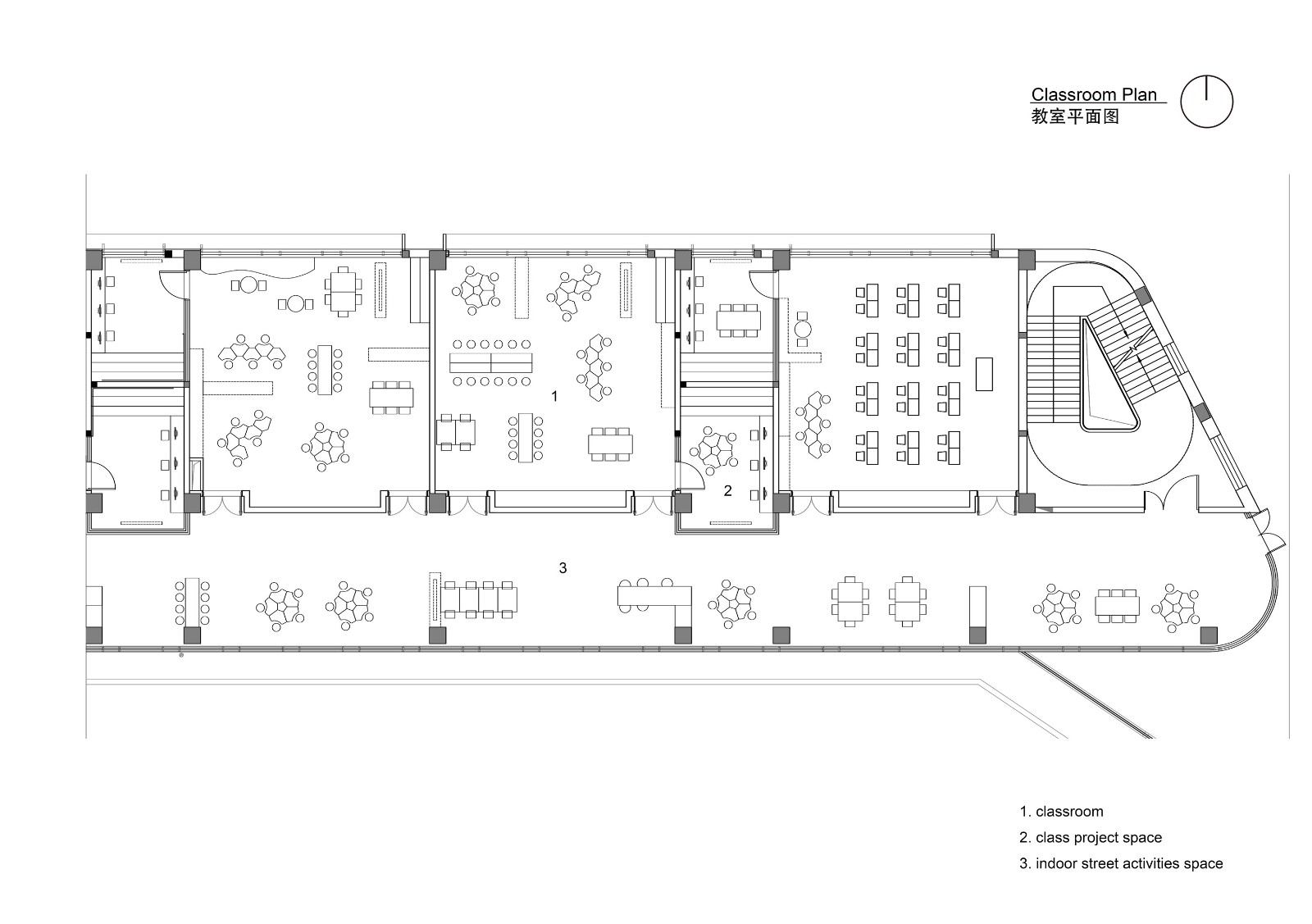 通過(guò)巧妙的空間設(shè)計(jì),非正式的學(xué)習(xí)空間可以容納非正式教學(xué),反之亦然。這種新的教育方式要求整個(gè)學(xué)校成為一個(gè)教學(xué)相長(zhǎng)的環(huán)境。