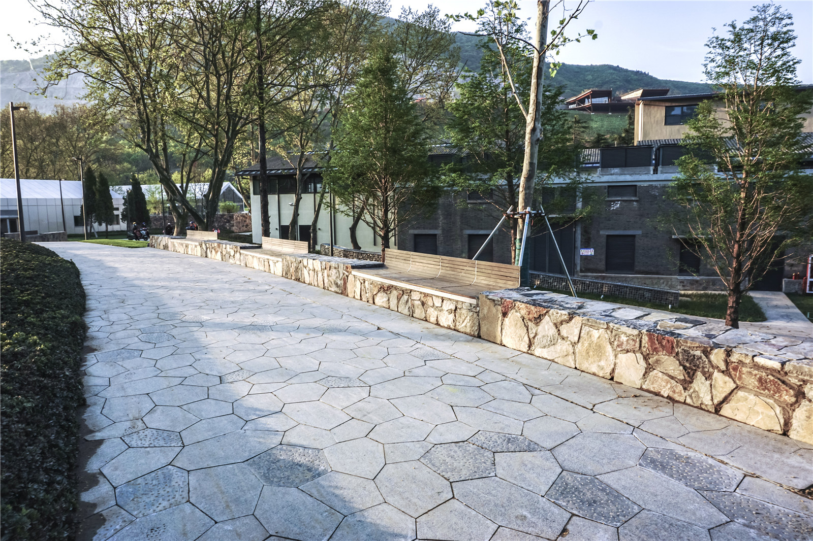 ▼大的石塊回收利用做為廣場的鋪裝和種植池的元素 創(chuàng)造出沉穩(wěn)的場地氣氛