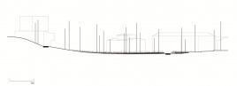 The paths are also carefully designed to create gentle slops that provide smooth walking experience descending into the ground. When walking on the paths, visitors are embraced by stone on the walls and the ground. The experience given creates an opportunity for the visitor to reflect on the mining memory of the site. Different textures and sizes of the stone have also been studied for the paving to signify the pace for walking. The entrance plaza where big stones are used for paver creates a calmer experience yet the paths with smaller stones in the woods provide a dynamic and moving journey.