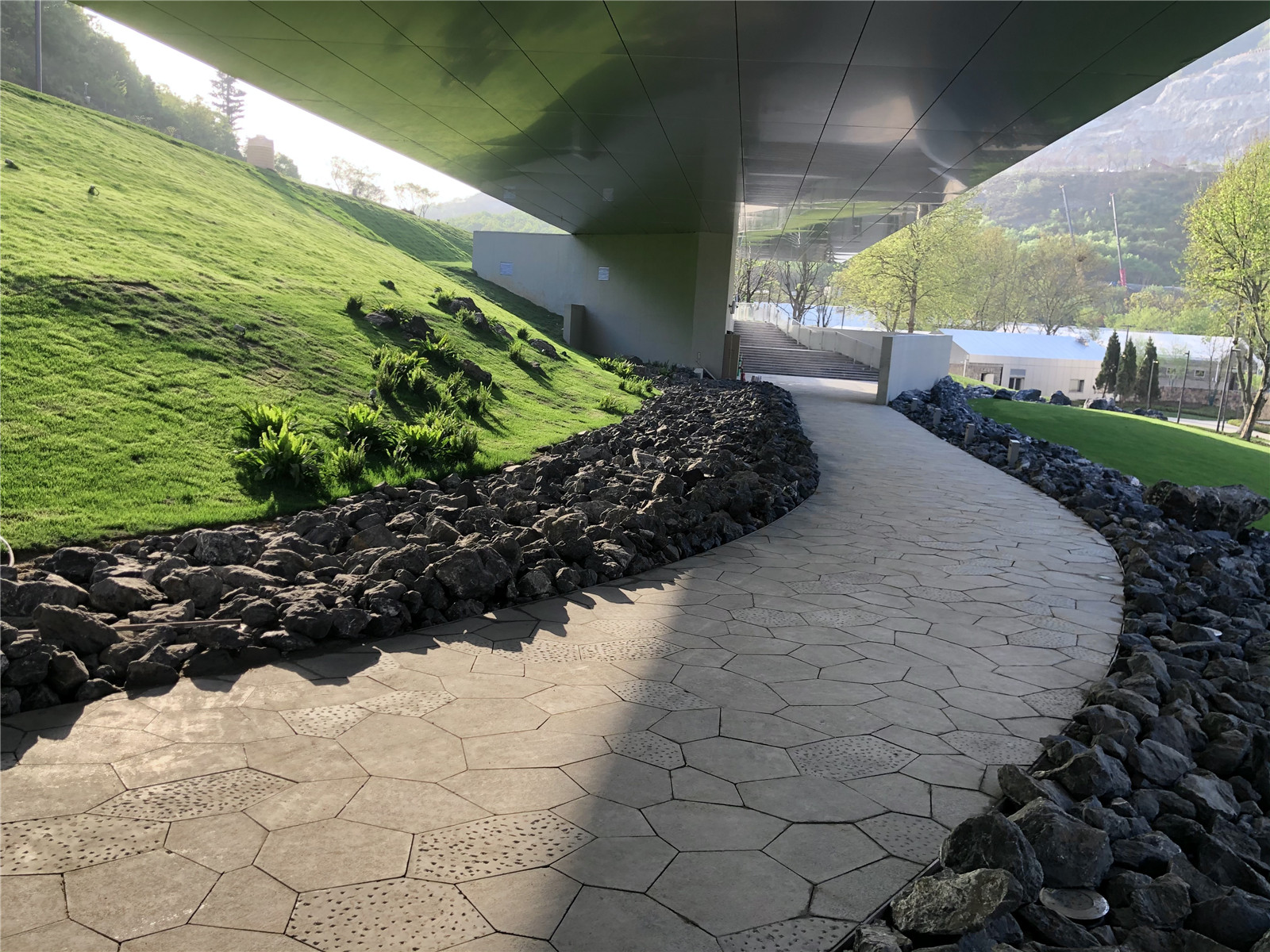 受到石礦開采歷史的啟發(fā),設(shè)計(jì)的另一個(gè)策略是在建設(shè)公園的過程中, 重新利用地基開挖發(fā)現(xiàn)的石塊并加以回收利用。現(xiàn)場挖掘過程中所得到的巨石被用作了建造材料。大型石塊用于美術(shù)館入口做為雕塑感強(qiáng)烈的意象元素, 創(chuàng)造出震撼人心的入場體驗(yàn),并在博物館入口處表露出了一絲傳承的氣息。宛如一個(gè)追思場所前的自然守護(hù)神,一個(gè)令人敬仰的神龕前的忠實(shí)守衛(wèi)。大地的力量在地質(zhì)的堅(jiān)固、沉重和平靜中再次展現(xiàn)了出來。