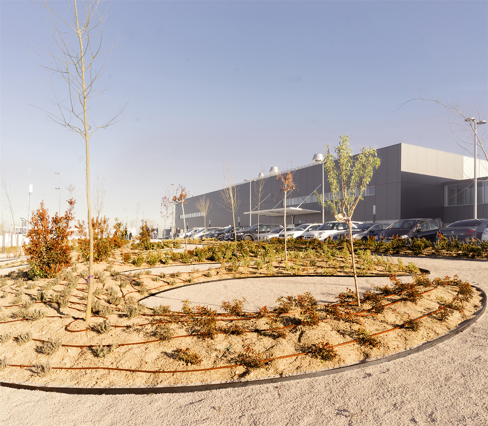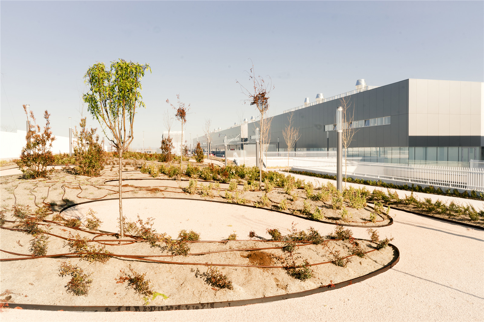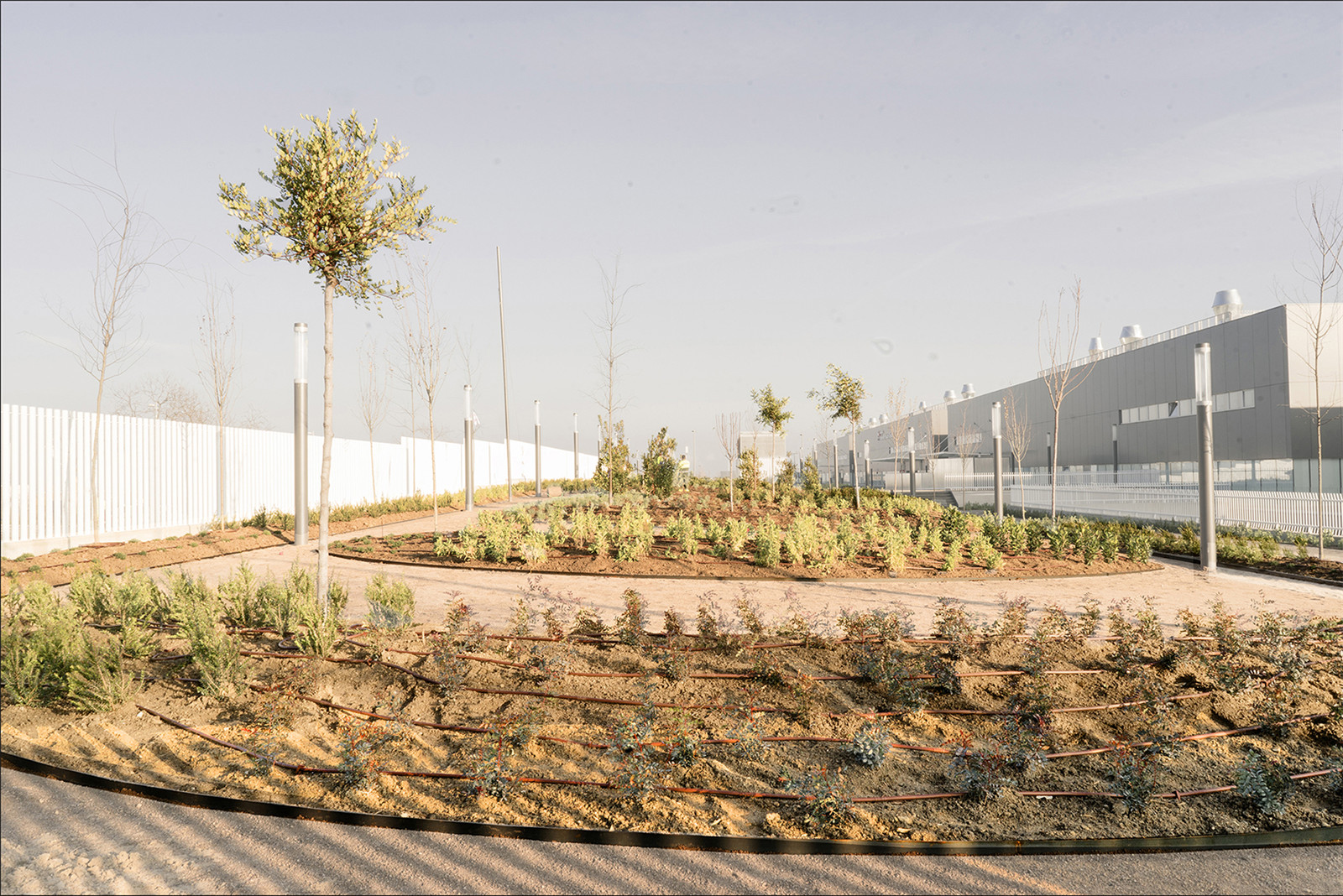Due to dry climatic conditions, adapted species with low water demand have been selected reducing the risk of allergies or respiratory problems. The topography has been modified to conserve rainwater and direct it to green areas that act as sponges that reduce runoff, store water, remove sediment and pollutants and release it into other ecosystems.