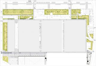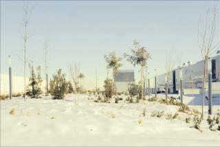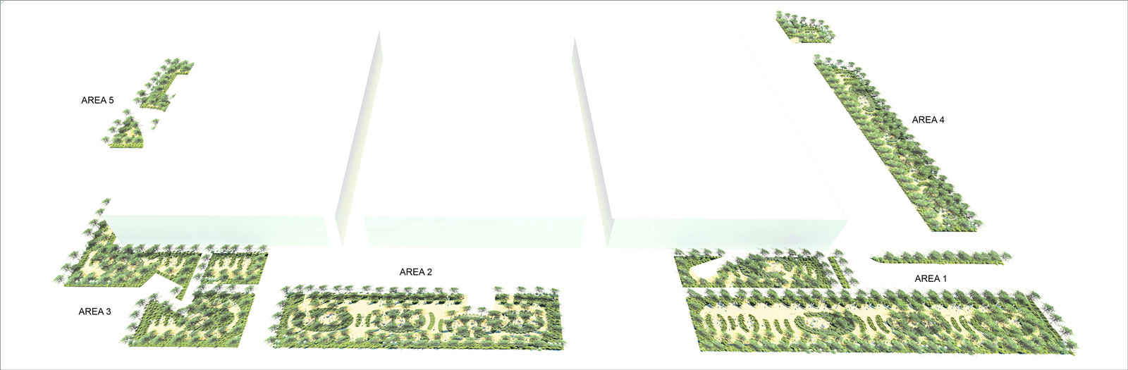 Due to the urgency in the inauguration, the economic restrictions, and the extra cost of the Madrid Emergency Hospital with respect to the initial budget, some parts of the landscape architecture project have not yet been built and others have had to be modified and reduced.