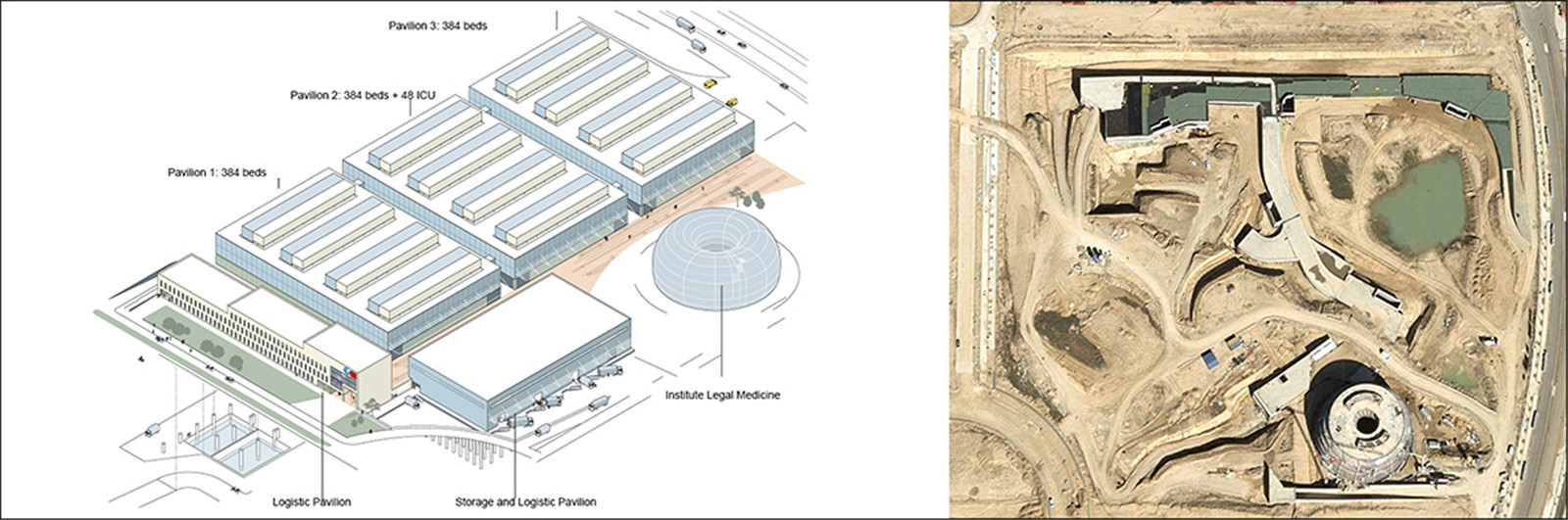 由于馬德里應急醫(yī)院啟動的緊迫性、經(jīng)濟約束以及超額預算的費用,部分景觀項目尚未建造,有些則進行了必要的調(diào)整和削減。