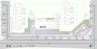 基地由此形成廣場(chǎng)+線性通道+灰空間穿插的空間組織結(jié)構(gòu),厘順準(zhǔn)業(yè)主人群與社區(qū)人群的交通導(dǎo)向與滯留關(guān)系。