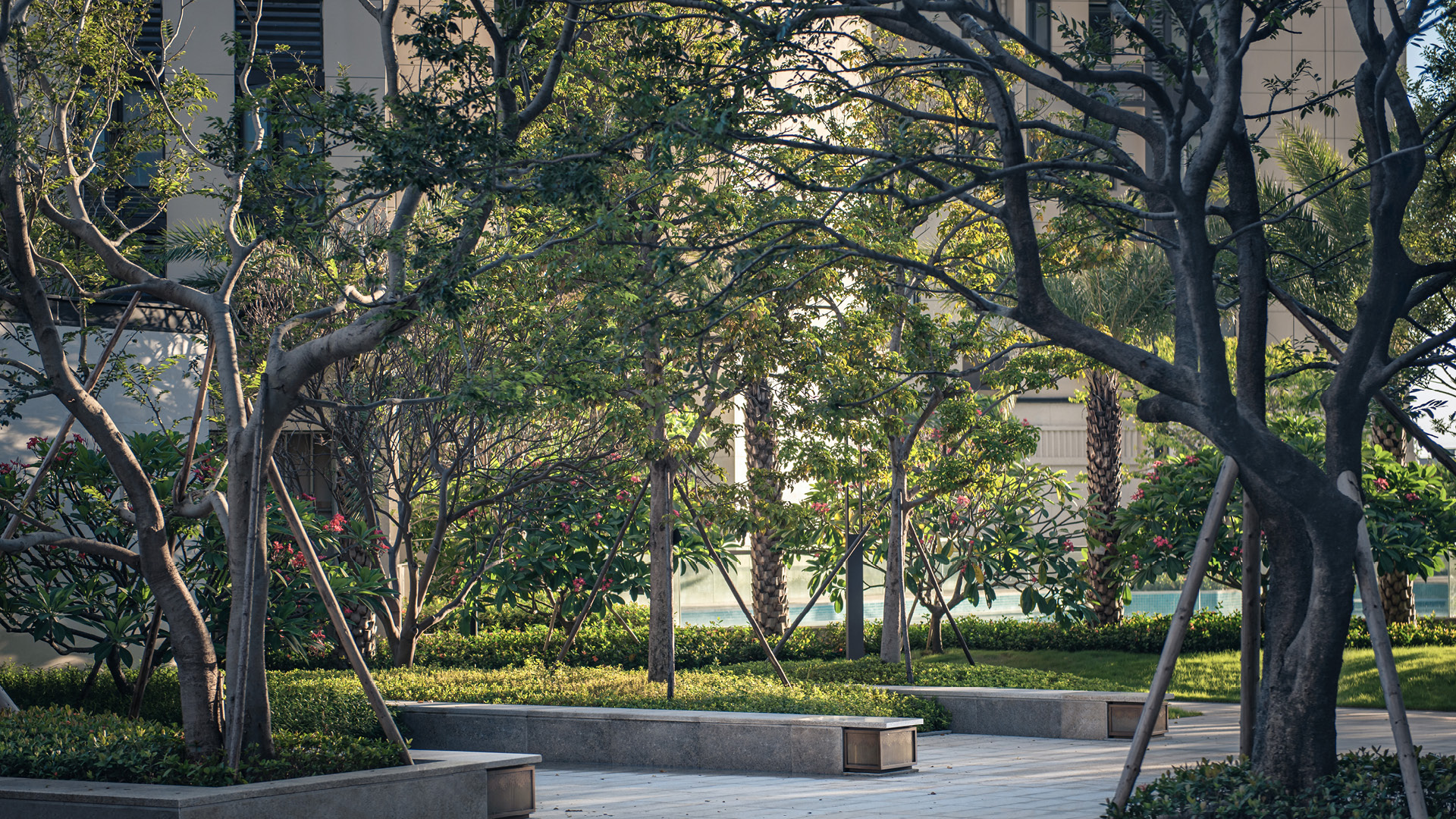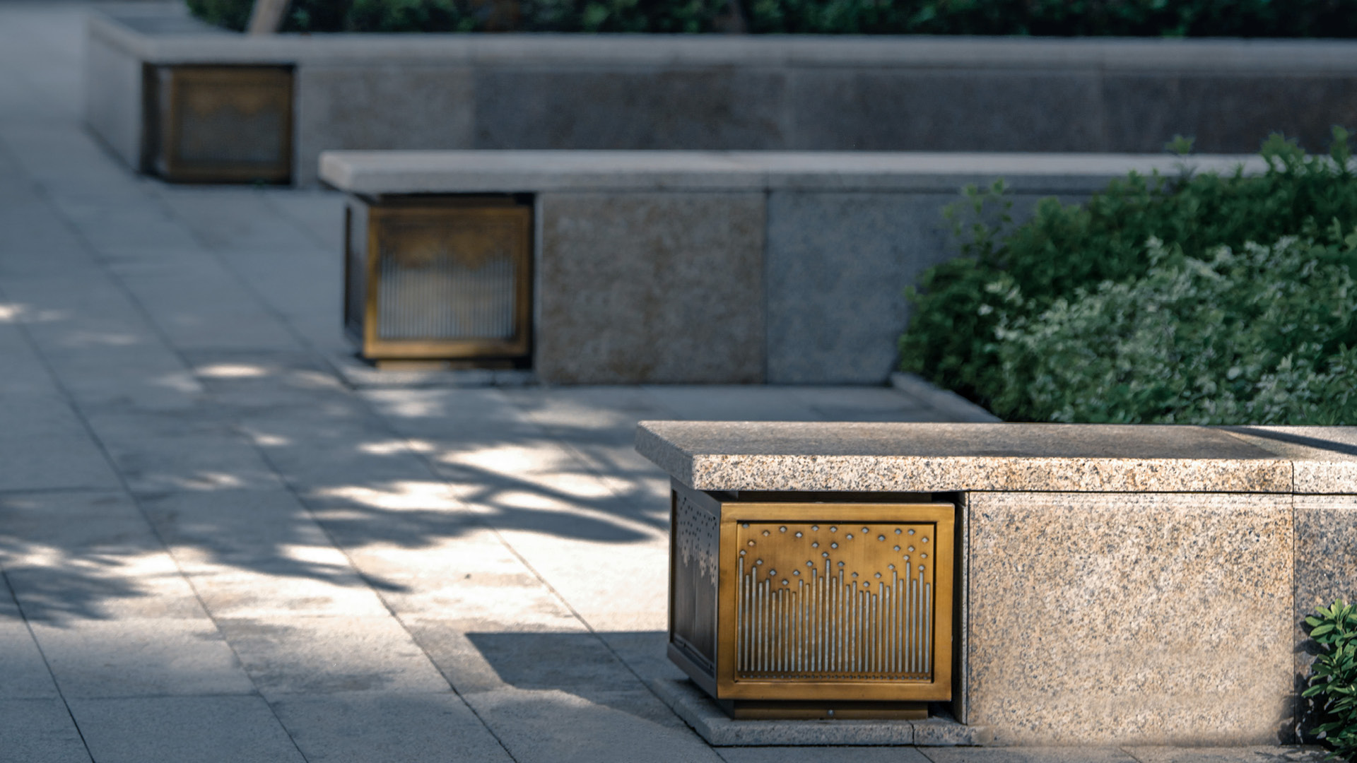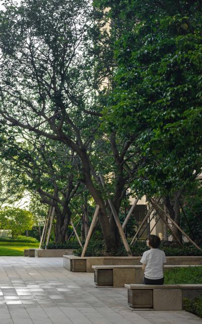 設(shè)計(jì)師賦予每一處景觀藝術(shù)裝置以相對應(yīng)的情景,無論是日光下拖長的影子,抑或是燈光下氤氳的暖意,均融入日常生活的細(xì)節(jié)。人們漫步其間,感受到的是不經(jīng)矯飾的當(dāng)代東方意蘊(yùn),以及雅致而精巧的秩序布局,足下是細(xì)碎月影,叢中是碧草疏影,處處俱是詩。
