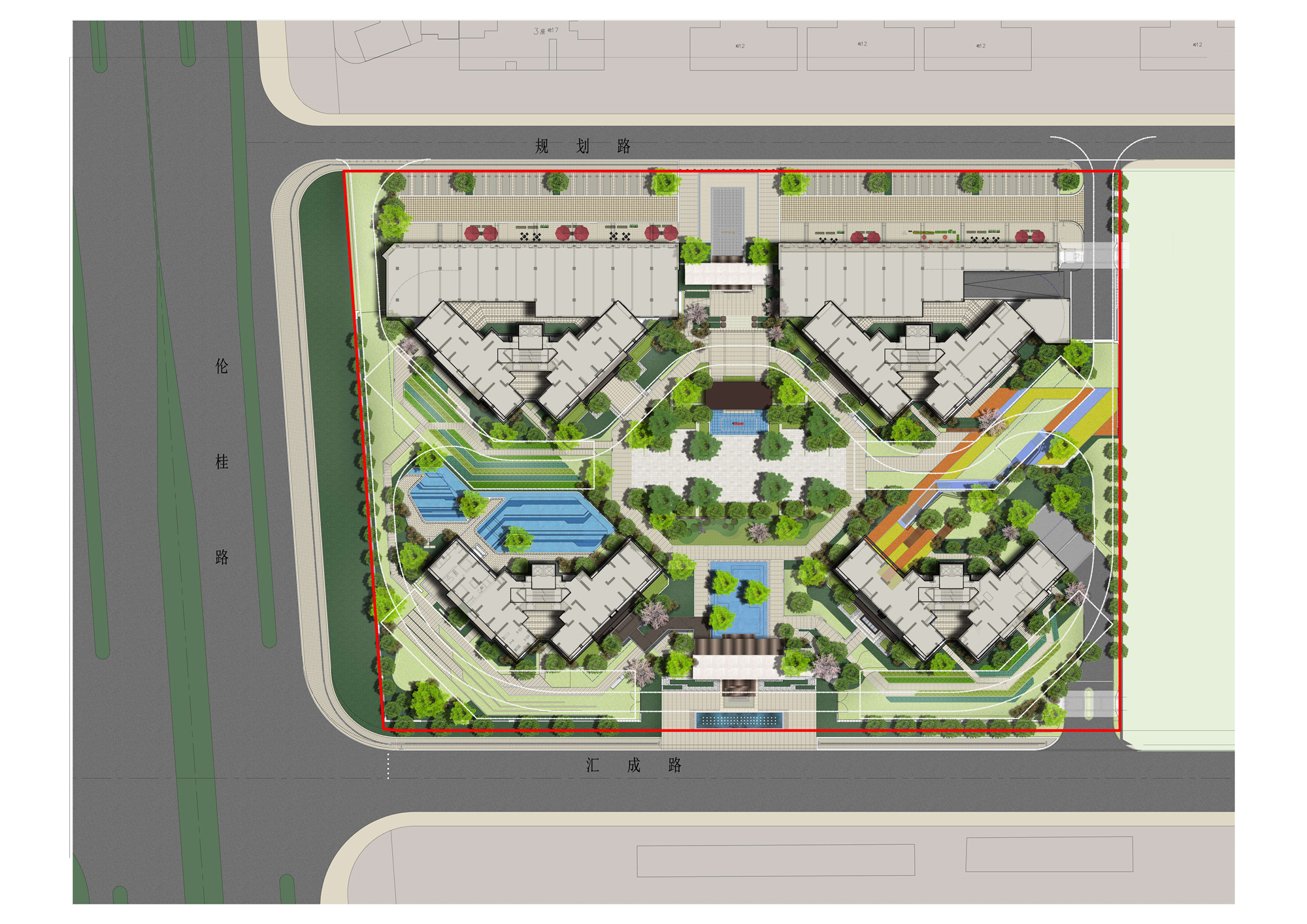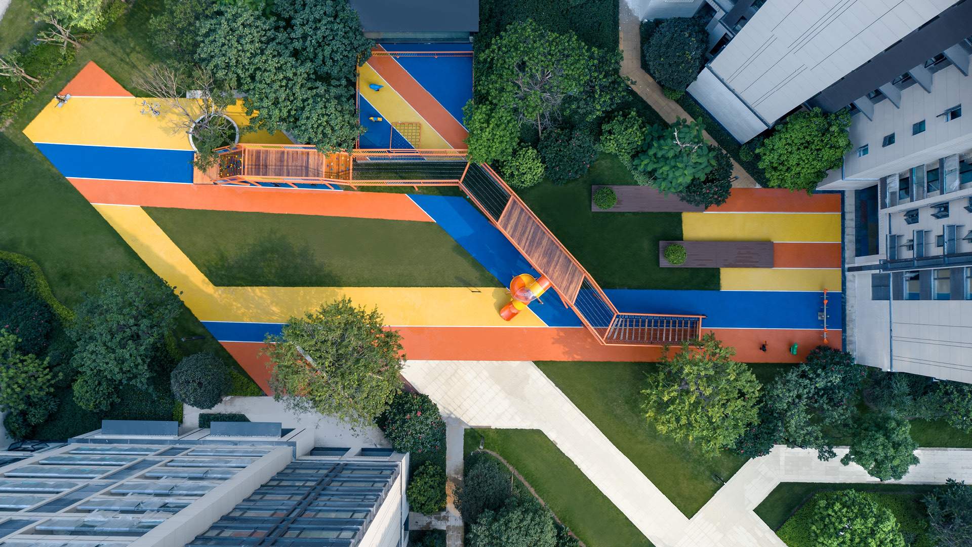 The park focuses on creating a playful and naive vibe, existing as a part of children’s joyful childhood. Bright colors, dynamic geometric lines and diversified activities further highlight the jubilant ambience, interesting setting and pleasurable experience. The neighborly community coordinates with the landscape environment for life, offering people joy and laughter in their daily life and meeting people’s future expectation.