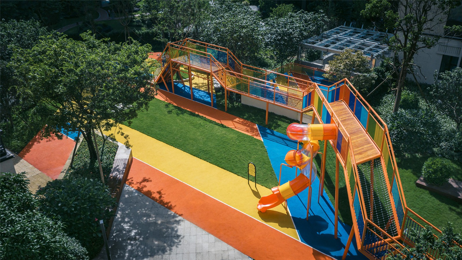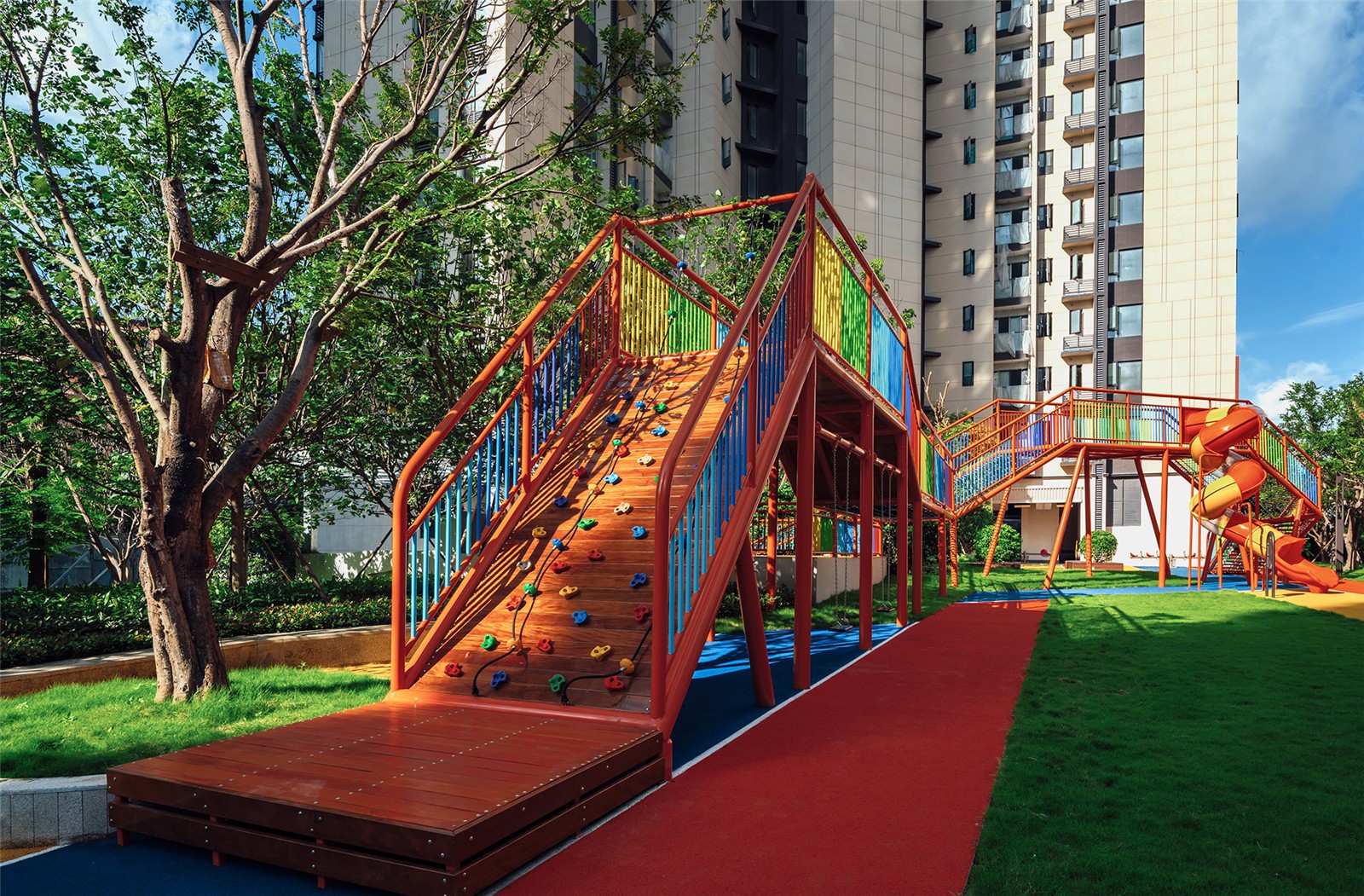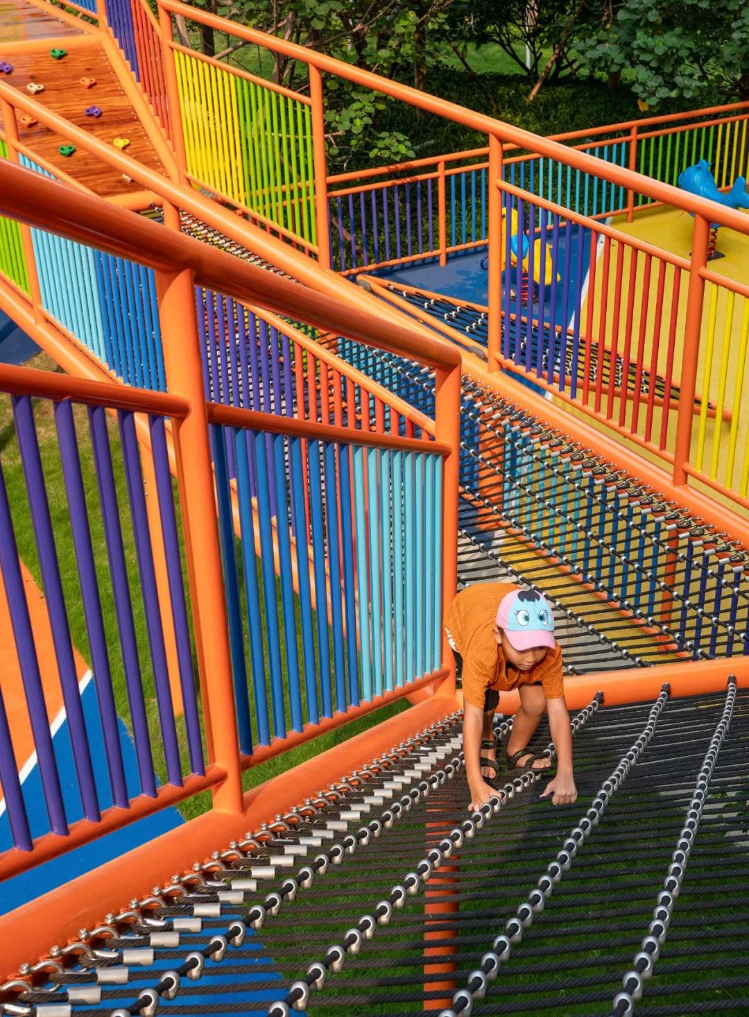 熱鬧、歡騰、快樂、充滿活力,兒童樂園是園區(qū)的一抹亮色,一道彩虹橋橫跨于綠蔭場,孩童們嬉戲著、玩鬧著,與家人或是小伙伴一起度過運(yùn)動(dòng)時(shí)光。