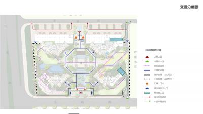 Referencing the entrance hall of hotels, the designer addresses the challenge of a nearly 1-meter height difference between the entrance and the park, while ensuring the respective crowd flow route for people and cars. The waterscape both in the front area and in the interior park provide an interior and exterior contrast, which vividly enriches the scene in a layered view.