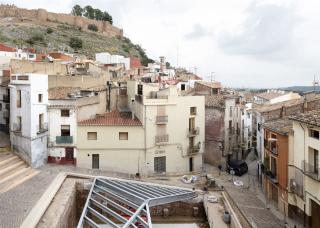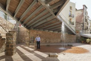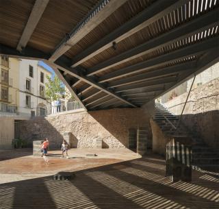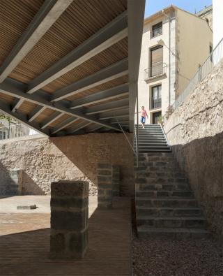 In the archaeological site were discovered the remains of a large space 15x15 meters size, from an Andalusian raft of the 12th Century surrounded by 1,40 meters thick walls. This space was reused during the 13-14th Century, during the Hospital Christian Order time, building 4 lines of stone arches and a Gothic staircase from a civil or religious building. The aim of the intervention is to recover the interest and urban life of the neighborhood with an evident depopulation, from the reintegration of the archaeological site to the rest of the square and restoring the connexions to the streets that were lost during years in the archaeological works.