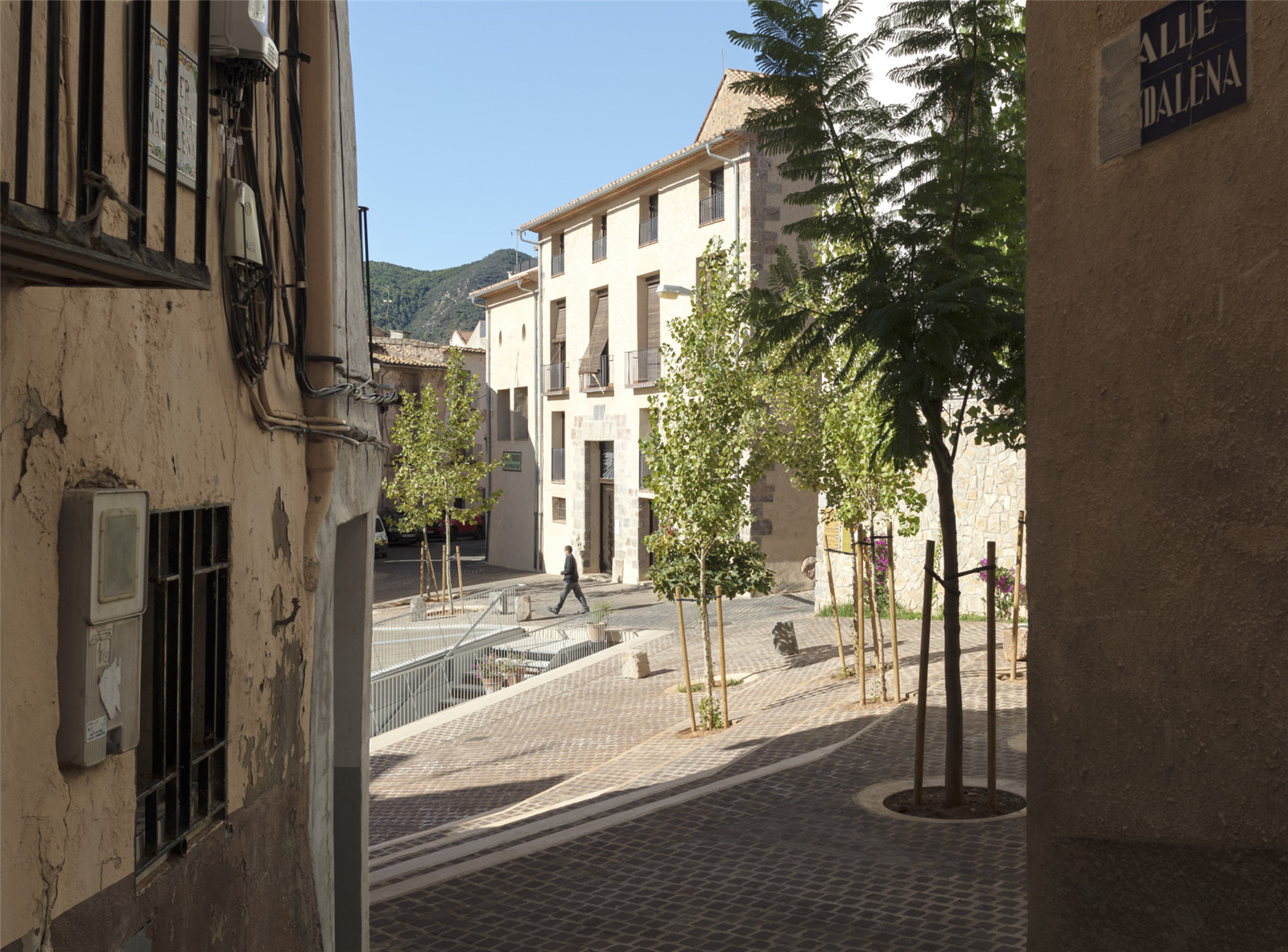 The project was designed from an inclusive perspective, to improve the quality of life of people in the neighborhood. The project tries to reconnect the different levels of the place, building a floor with a continuous paving of anti-slipping stone as an adaptation of the traditional paving system. The connections with the streets are solved with soft ramps and with stairs of small height, to facilitate the daily displacements of the elderly people...to go to the oven, to the Church or to take the children to school.