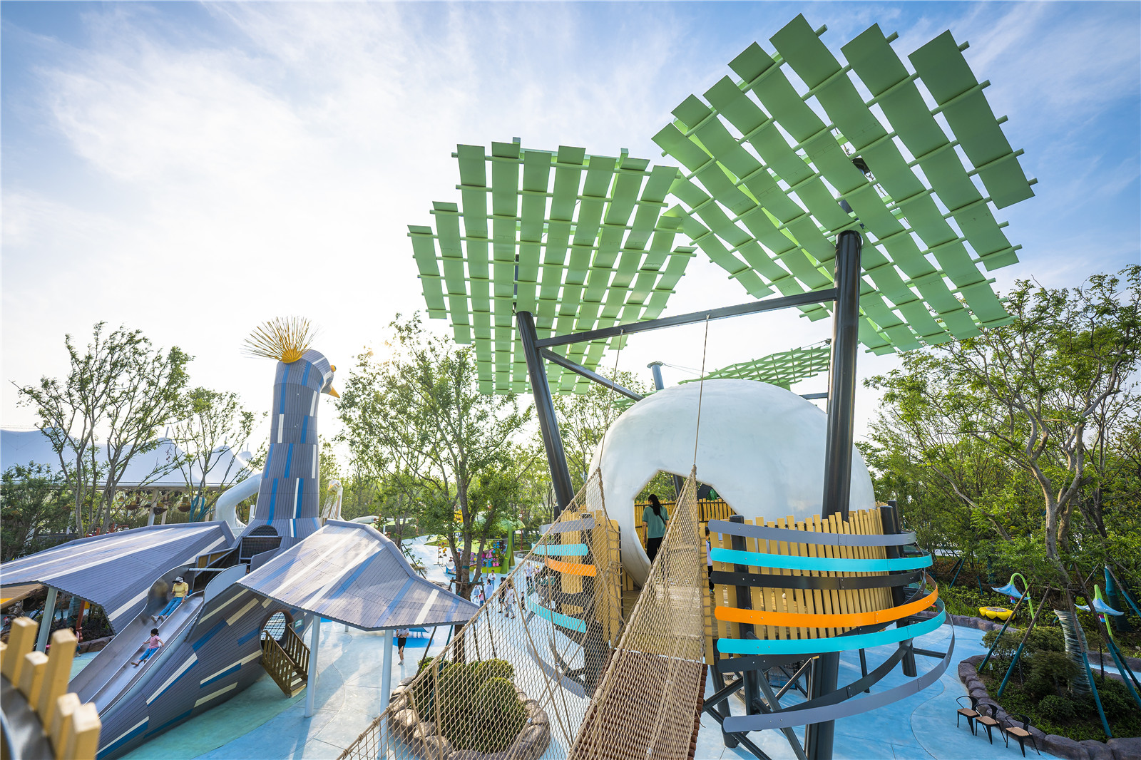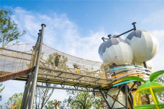 鳥巢高塔真實(shí)還原秋沙鴨,“破殼、孵化、棲息”繁衍的鳥巢功能。搭載繩網(wǎng)吊橋、立體攀爬、圓形躺網(wǎng)、障礙小徑,20多種鍛煉膽識(shí)和智力的豐富體驗(yàn)。