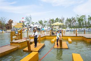 湖面上設(shè)置親子竹筏、搖晃橋、拉伸橋,泛舟“耳語湖“扮演開拓新大陸的水手,在這里享受碧海藍(lán)天的愜意,感受乘風(fēng)破浪的冒險(xiǎn)精神。