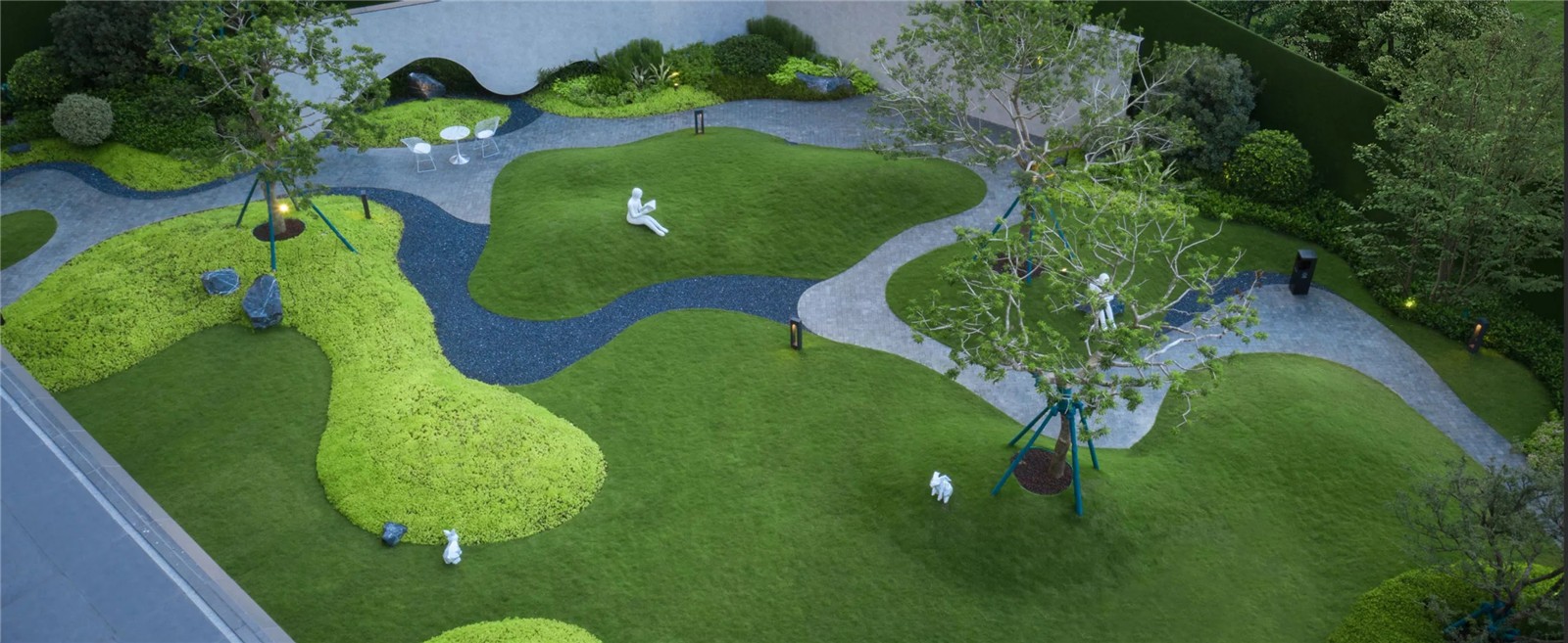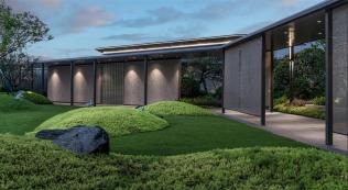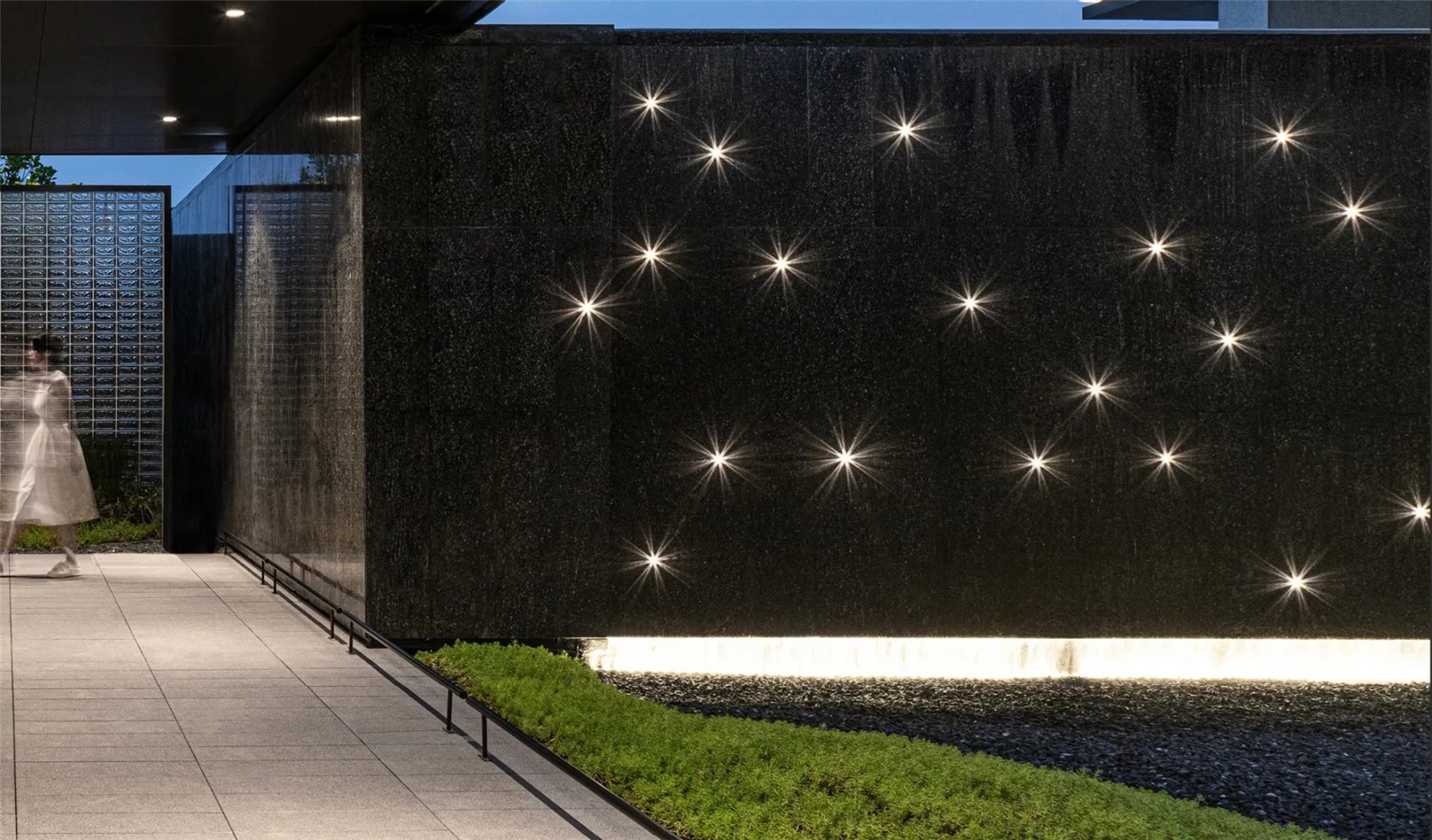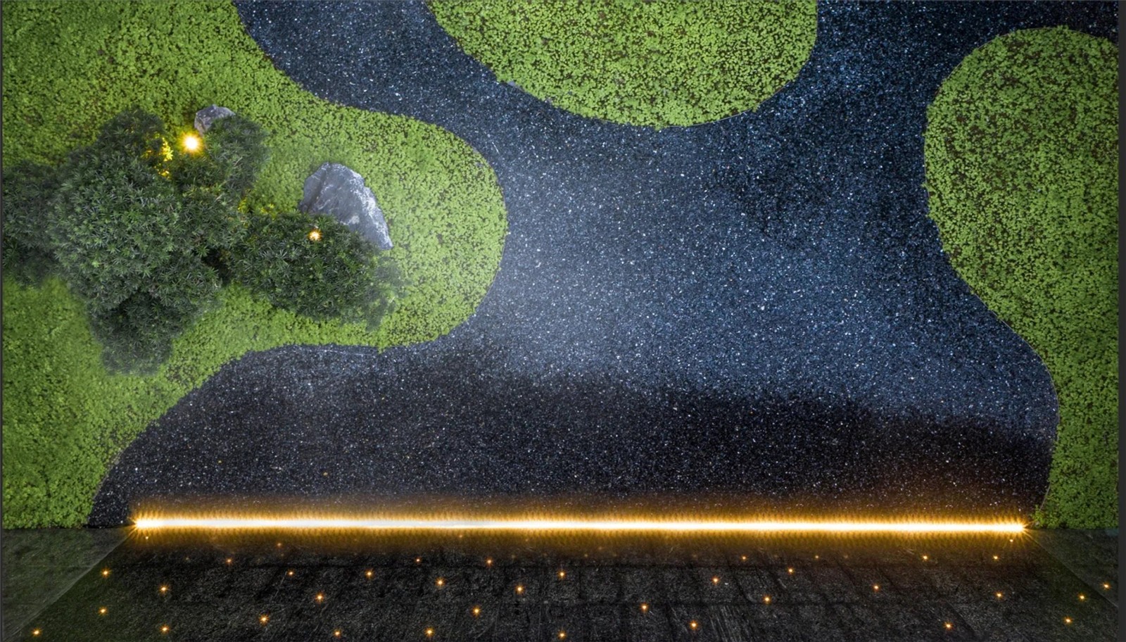 當最后一抹夕陽消散,天幕落下。以石為紙,綠植為墨,在石庭中繪出卷卷斜云。而云間,點點星光躍動而起,與天的暮色遙相呼應(yīng)。