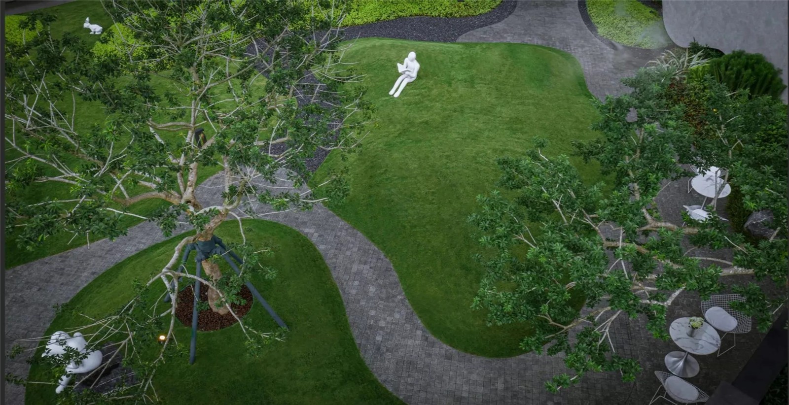 院內(nèi)景觀小品的設(shè)計以〃浮云之上〃為設(shè)計理念,以 漂浮、色彩、藝術(shù)和自由的態(tài)度用雕塑的形式展示, 感知生活中美好藝術(shù)。
