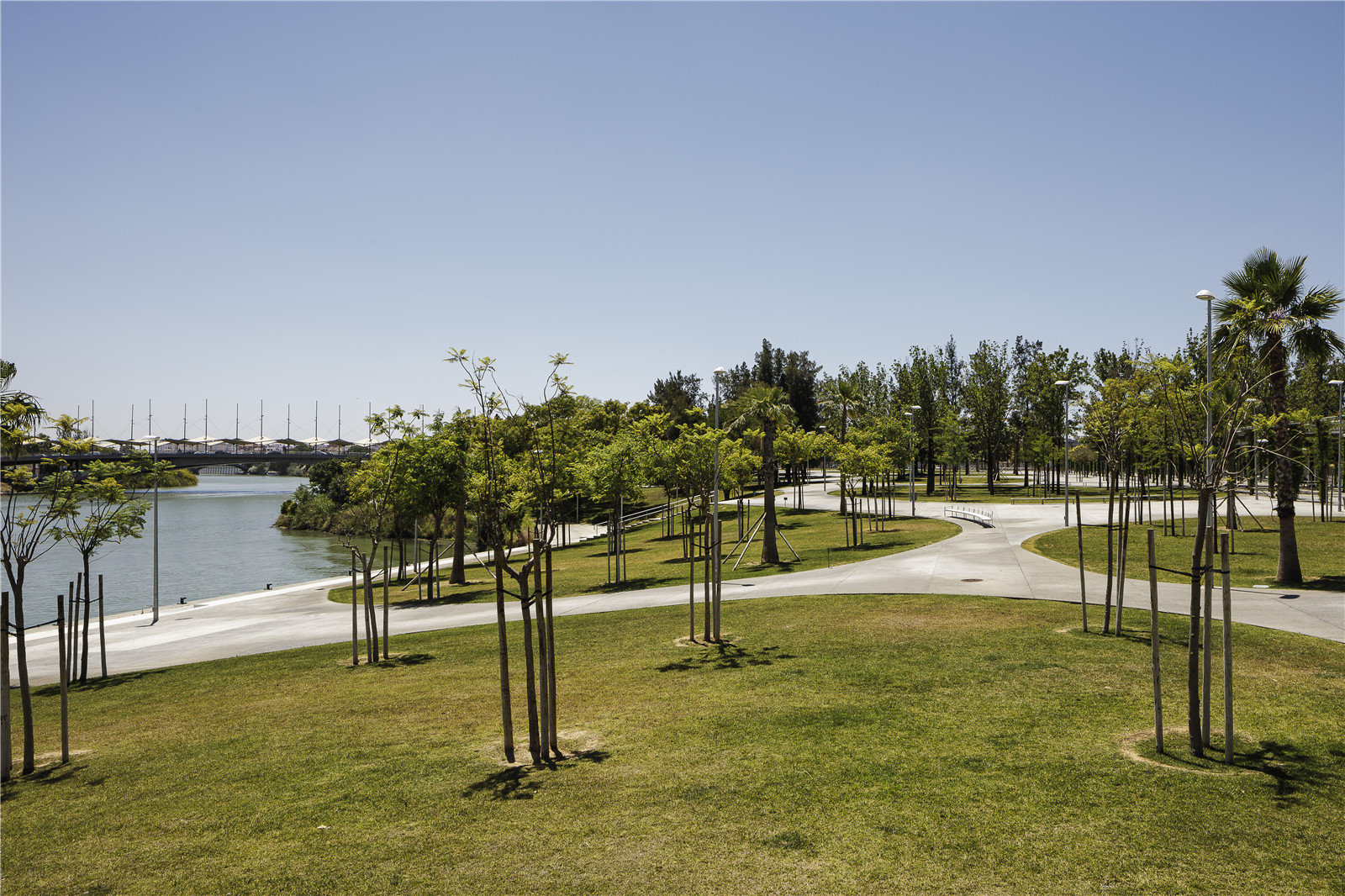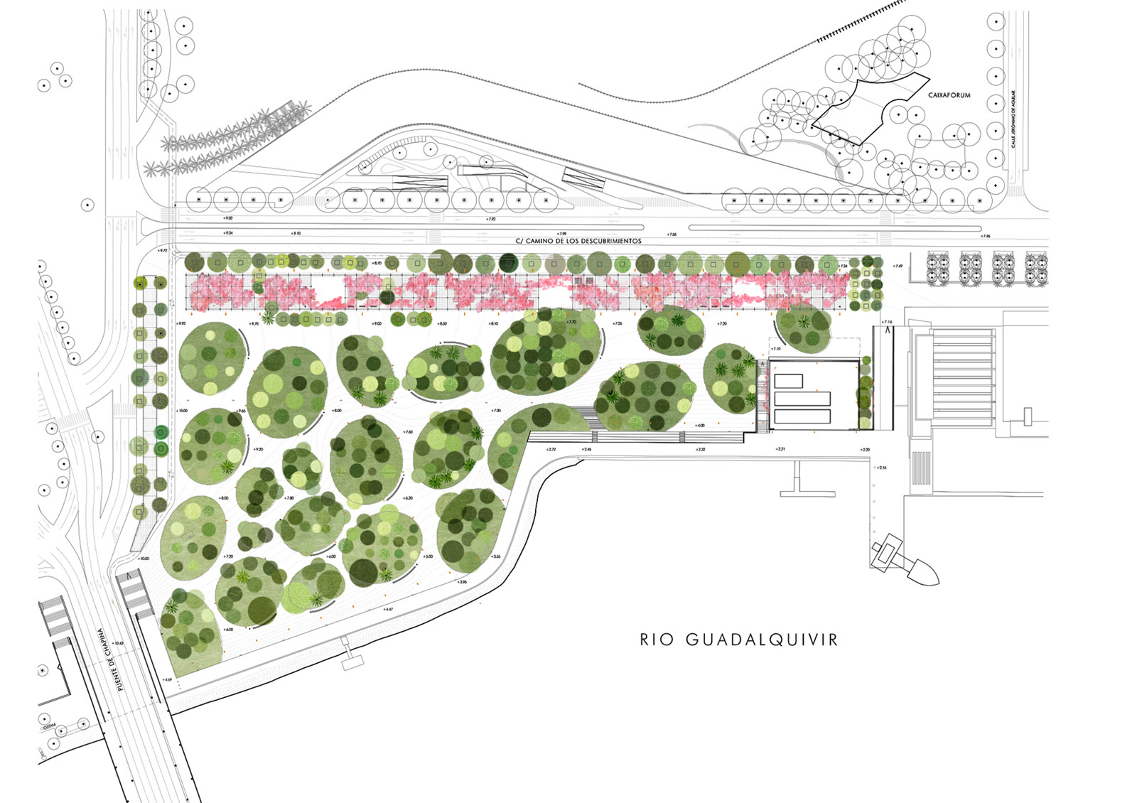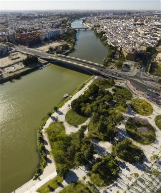 該項目場地坐落在瓜達爾基維爾河的右岸,南北側分別以導航館與查皮納橋為界限,西側則是探索之路的新路段。河岸線為這座新建的公園劃定了東側的邊緣。
