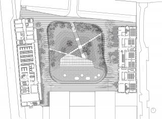 The co-existence of different uses, namely the proximity between the future premises of Paris 1, the military accommodation and the rooms for students taking preparatory classes make the square something of a challenge: a place where flows both converge and separate, it must make it possible to preserve the overall sense of the site while avoiding any undesirable confrontations between users.