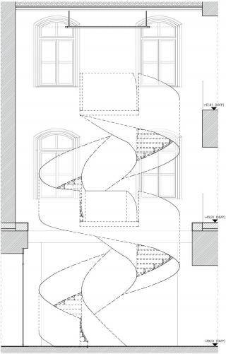 The internal fa?ades are revealed by generous walkways, while the height is emphasised by shafts that show off the existing volumes.