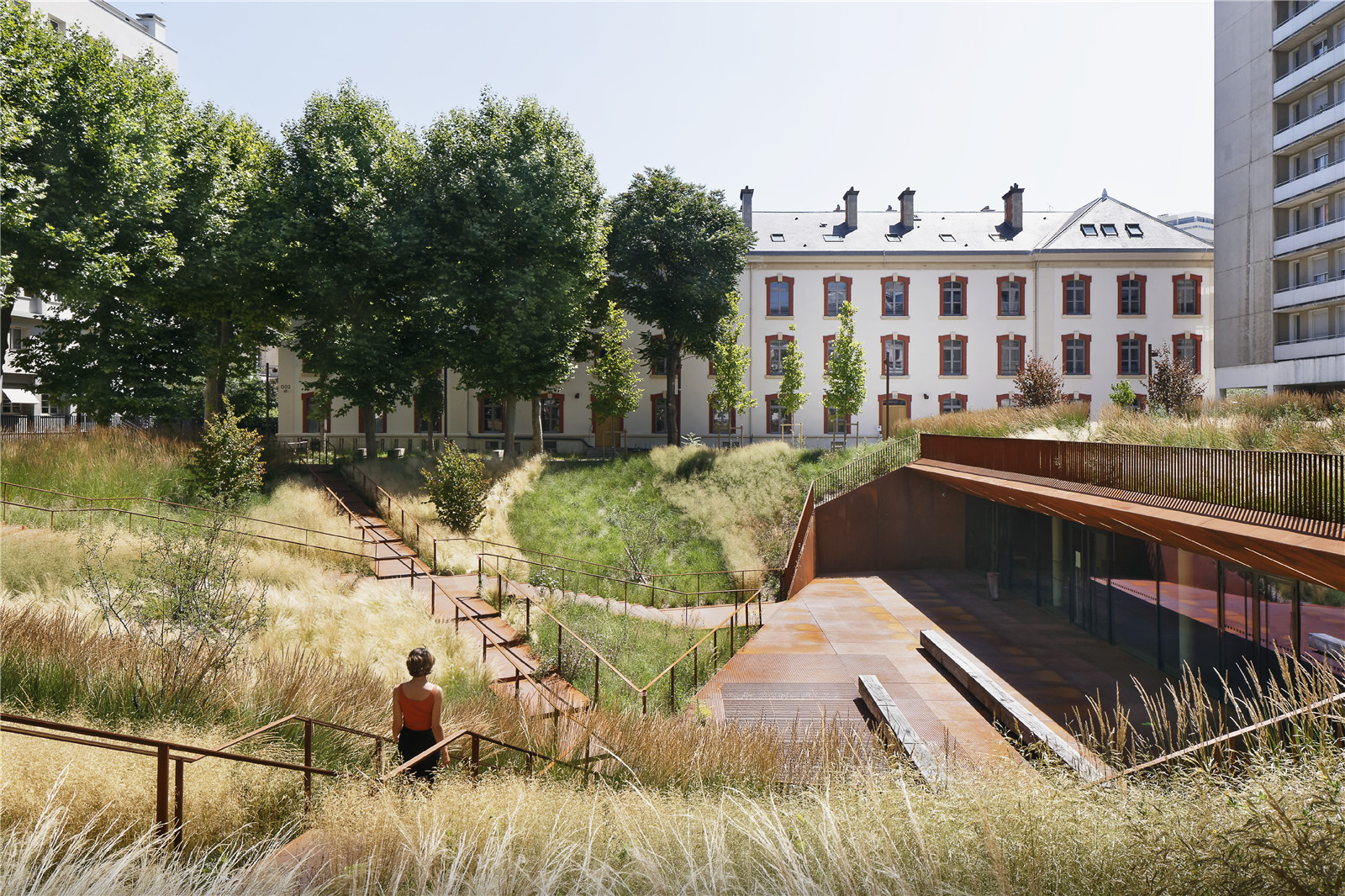 "There was great potential on this site for a garden, a place for the students to interact in convivial surroundings. It was also a unique opportunity to recreate a large tree-filled square in the heart of Paris to showcase the existing plane trees and add to them to offer a vast, well-planted and green esplanade.