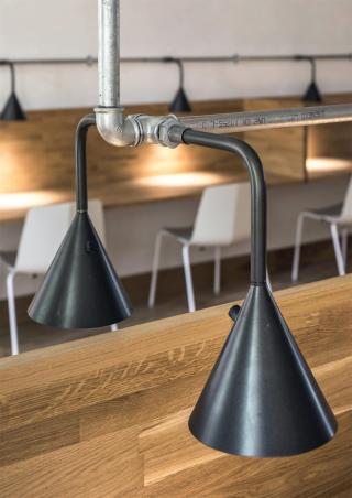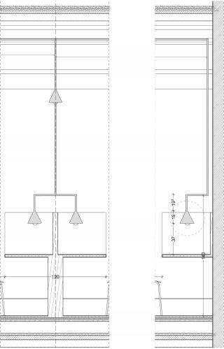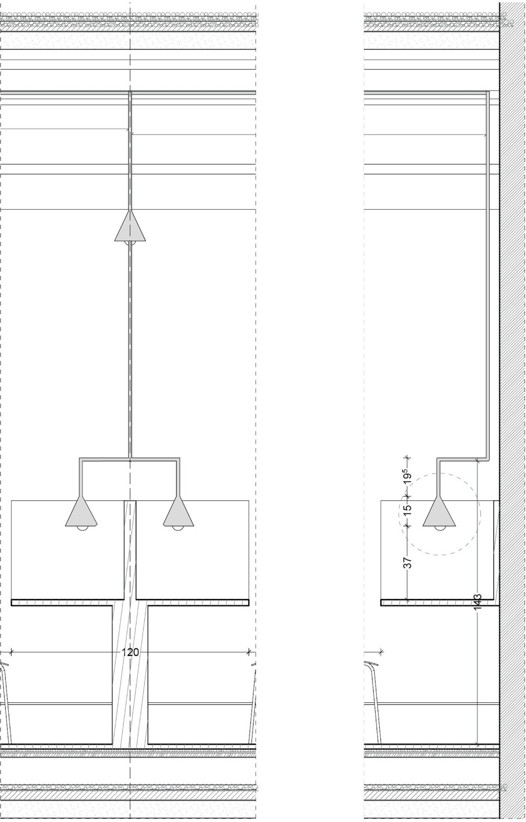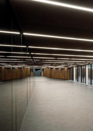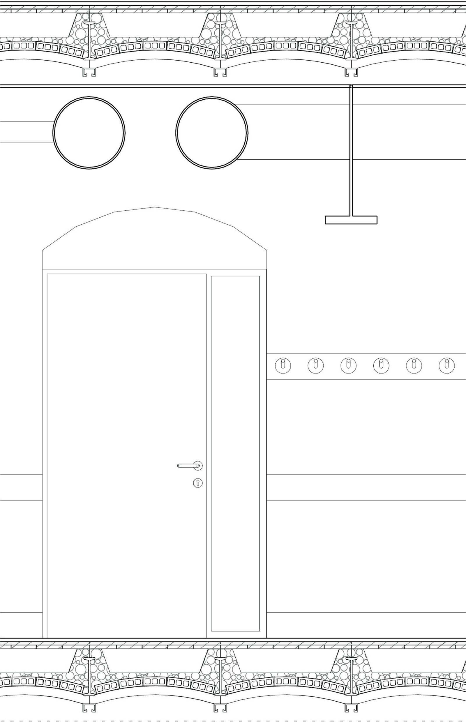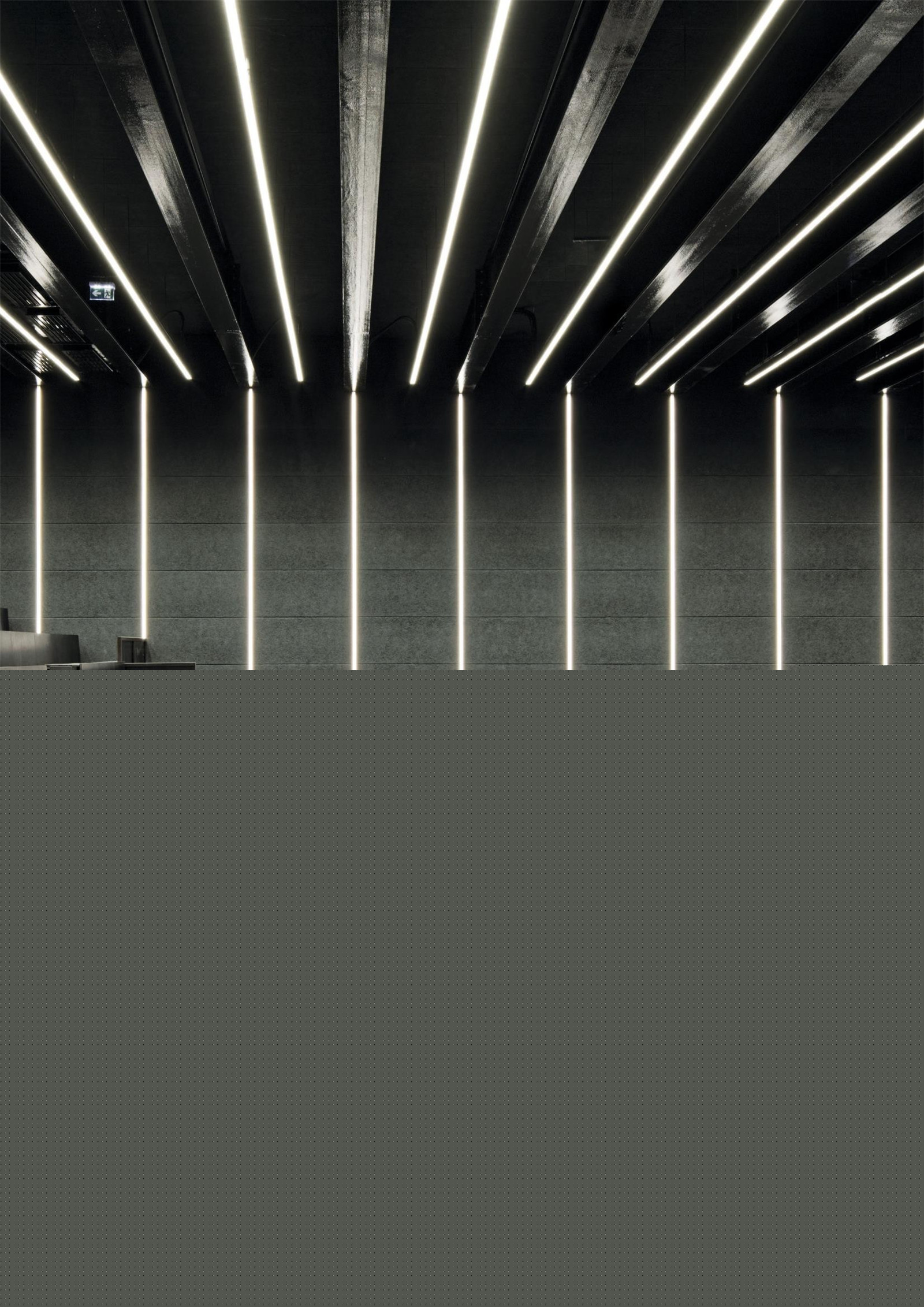 The qualities of the existing site are magnified by the complete freeing up of the spaces: the simple application of flocking on the underside of the arches (acoustics and fire prevention), as well as the complete absence of false ceilings, thus revealing the technical installations, helps to maintain the existing volumes.