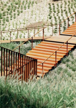該區(qū)預(yù)設(shè)為內(nèi)部地形,通過地面微小的褶皺和平緩斜坡的形式,以最小的干擾將不同高度層次的地形連接為一體。