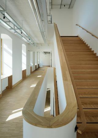 在樓上,一條寬闊敞亮、充滿自然光的通道為創(chuàng)建跨層的會議場所提供了可能。每層樓都由開放式的主樓梯相連接,由此可直接進入教室,而不需要使用密閉的樓梯間。