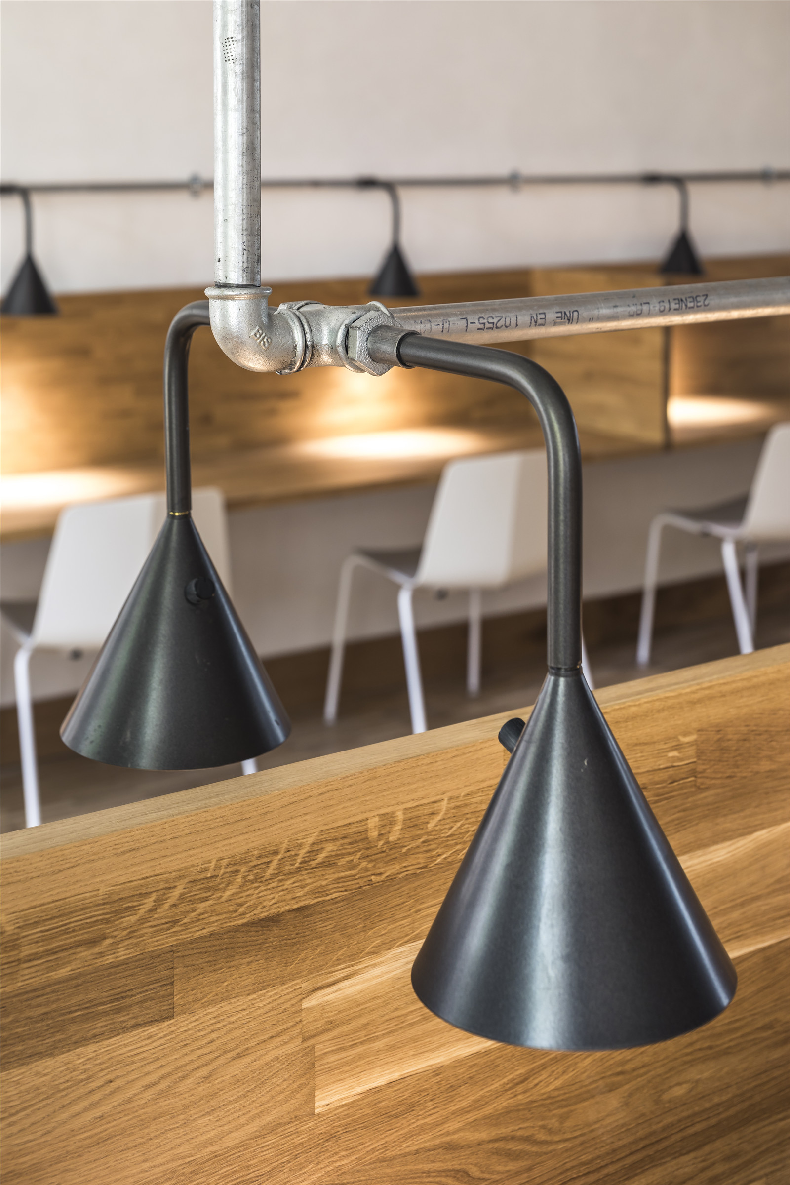一種“野獸派”風格在暴露出的設(shè)備管網(wǎng)中展現(xiàn)了出來,這與定制家具的精致細節(jié)和高級原料(鋼、實橡木、地板)形成鮮明對比。