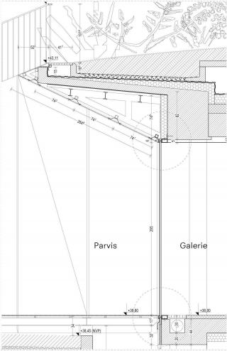 Entrance esplanade to the gallery: curtain wall and self-weathering steel canopy ? ChartierDalix