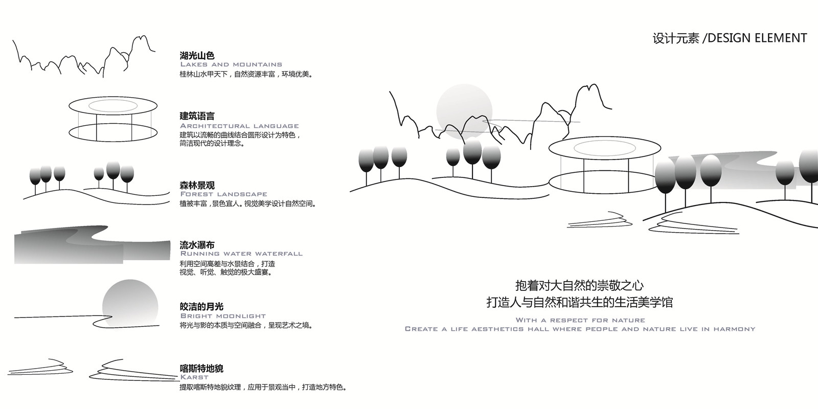 設(shè)計團隊用“Less Is More”少即是多極簡的設(shè)計手法在喧囂的城市之外建造未來城市生活美學(xué)中心,坐擁桂林山水的美好,對自然保有敬畏之心,不僅僅是項目設(shè)計本身,更是對生活態(tài)度的追尋。以桂林山水的人文情懷為依托,融合現(xiàn)代藝術(shù)手法,開啟對未來生活美學(xué)的探索。