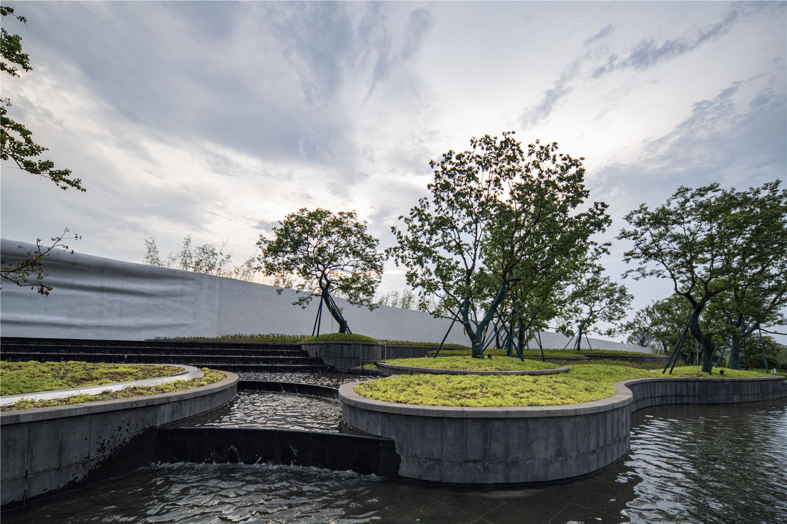 通過對地形的塑造,創(chuàng)造層次感豐富的景觀效果。整體植被豐富,景色宜人,用視覺美學(xué)設(shè)計自然空間。舒適的空間尺度,情景交融的參觀體驗。