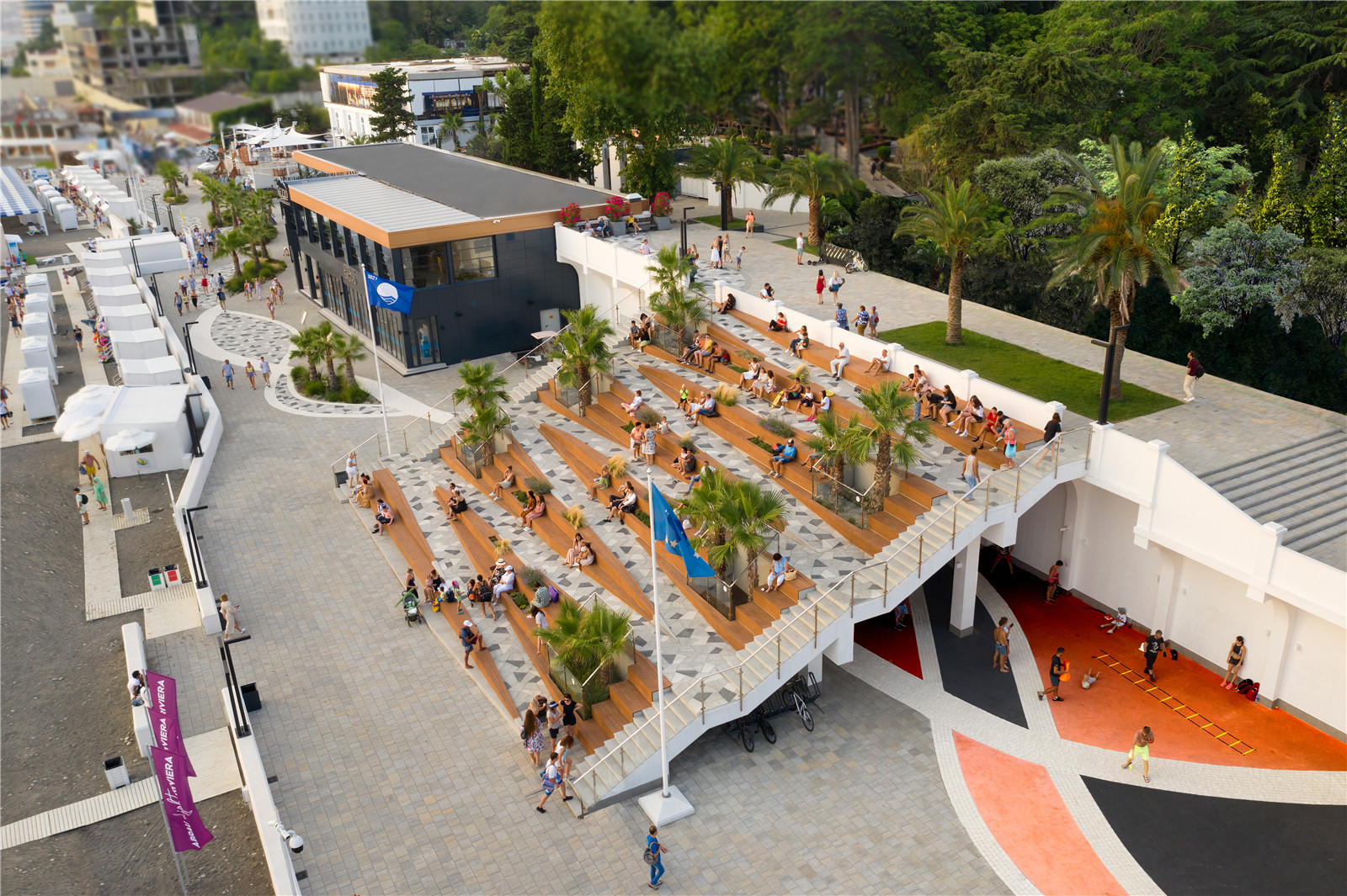 The opening of the first part of the project – the seafront line with a quality recreational development - proved how much the city needed a contemporary public space: the location has right away become extremely popular with the youth, tourists and locals in Sochi. In 2020 the Riviera beach was named Beach#1 in the Krasnodar region based on its infrastructure and popularity. Thanks to the project, the architectural bureau ab2.0 managed to revive this space making it famous again.