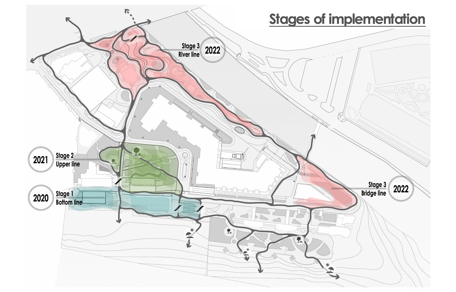 According to plan, in 2022 the full redevelopment of the whole Riviera seafront territory is to be finished, including the embankment of the Sochi river, thus allowing to create a new circled walking route. The total improved area will cover 2.5 hectares.