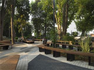 The reconstruction project was split into two parts. In 2020 the changes covered the first project part in the lower zone of the seafront. The key elements of the park are a wooden amphitheatre overlooking the sunset and combined with a 24-meter cascade rampant staircase, and the sites for workout. Small architectural forms specially designed for the project are scattered around the territory.