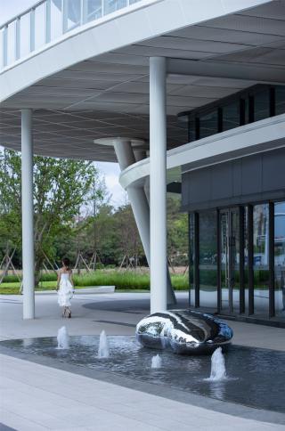 簡(jiǎn)單精致的涌泉設(shè)計(jì),與建筑的姿態(tài)、地面的素凈充分融合,引入款款而行,開(kāi)啟回歸自然的藝術(shù)之旅。