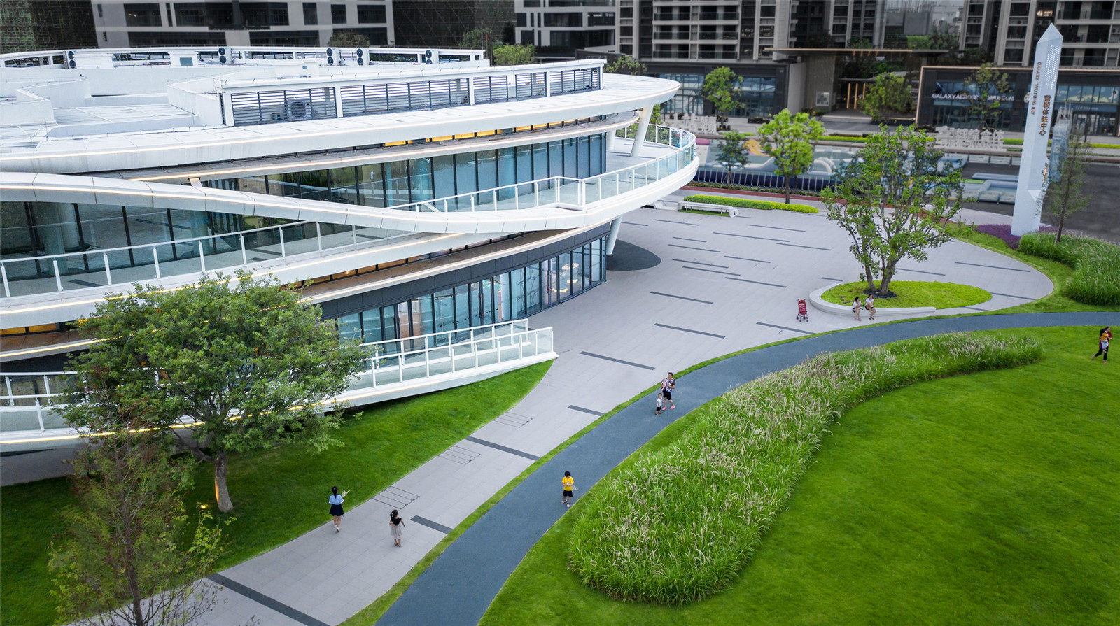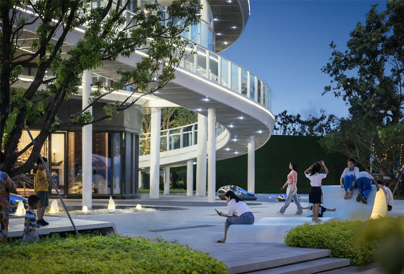鄰里中心展示了景觀設(shè)計(jì)的曲線來(lái)源,循著光照的方向,自然、藝術(shù)與生活的共生畫卷,徐徐展開(kāi)。